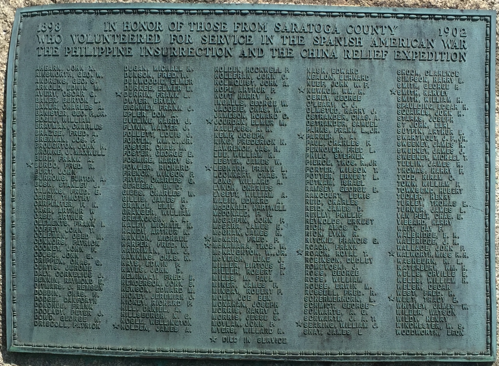 SARATOGA COUNTY SPANISH-AMERICAN WAR MEMORIAL PLAQUE A