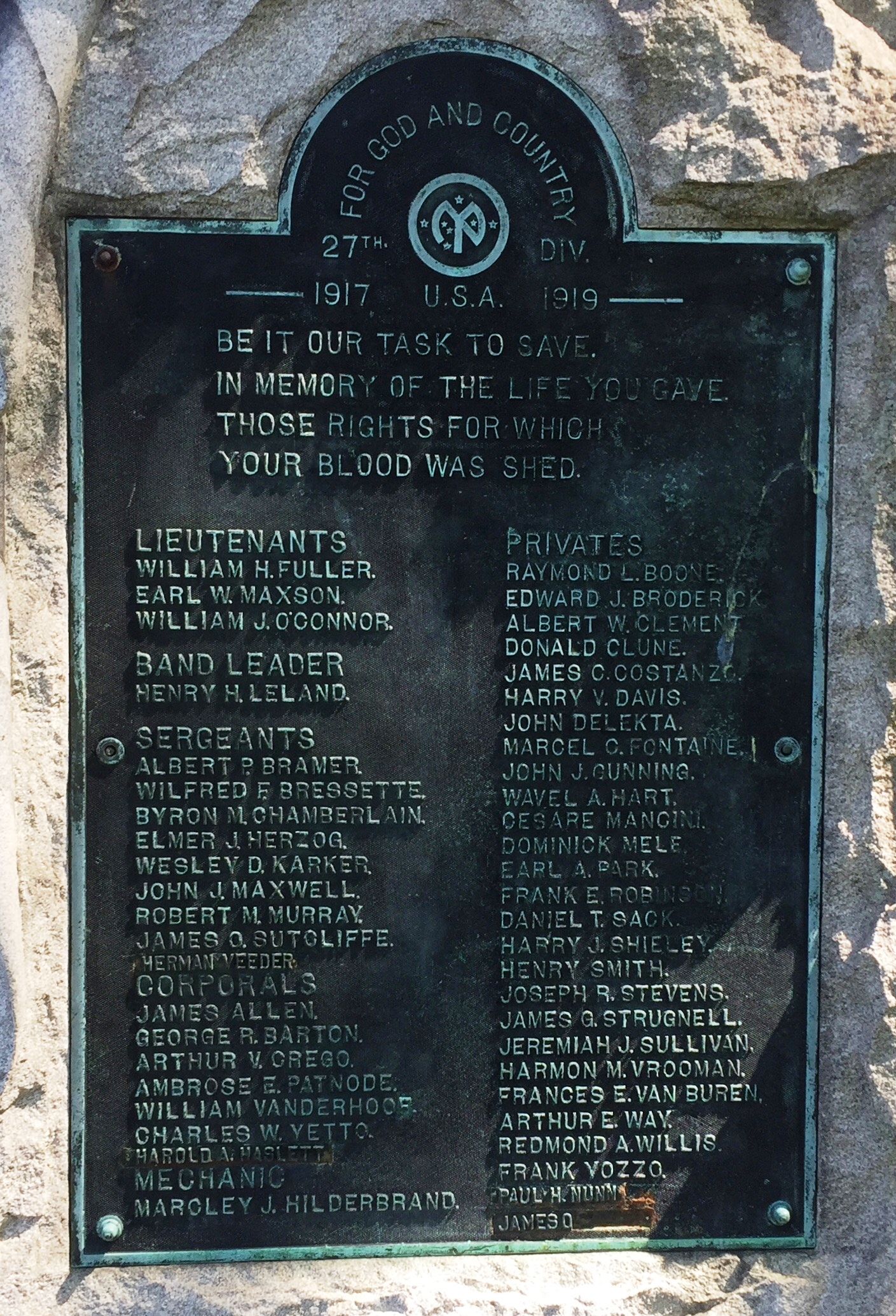 SCHENECTADY 27TH DIVISION WORLD WAR I MEMORIAL PLAQUE