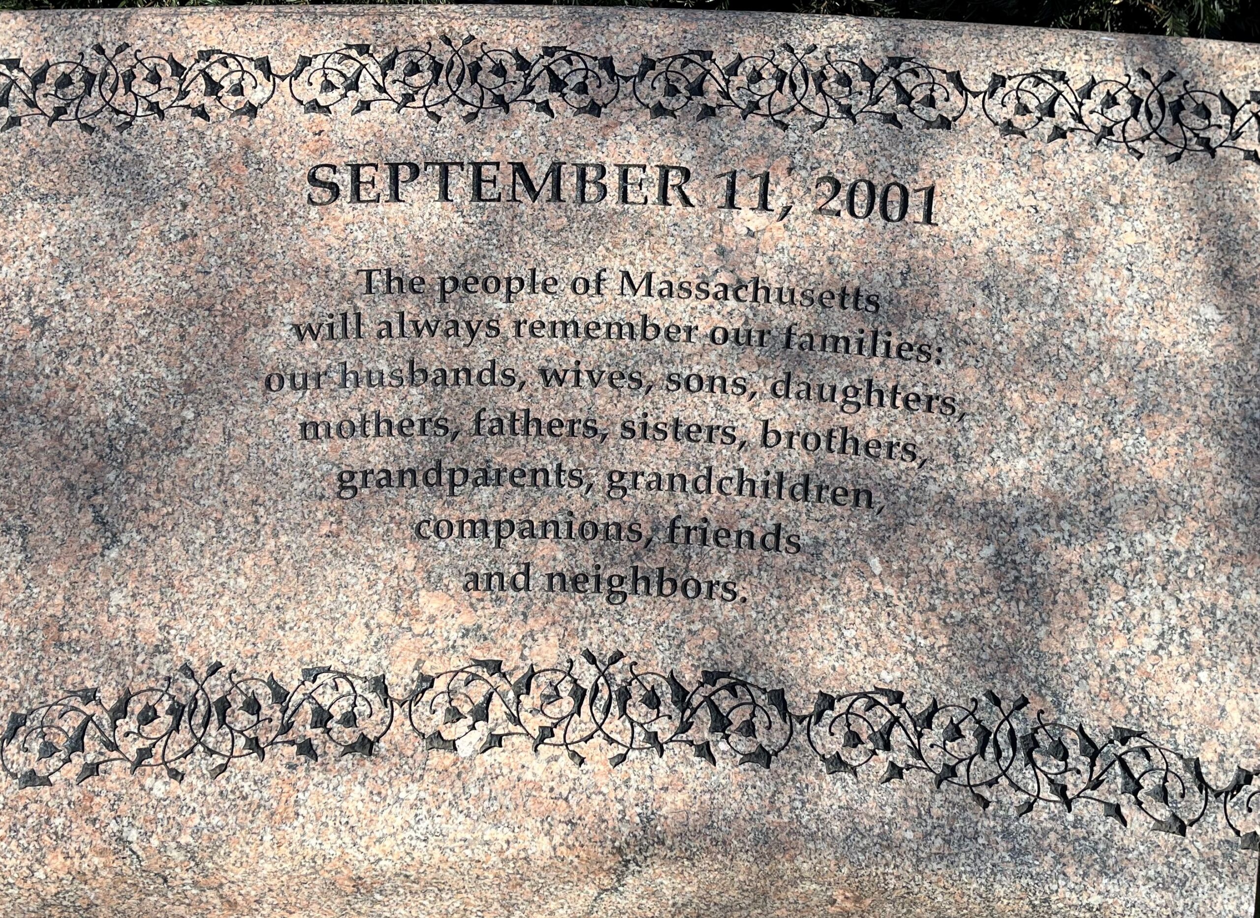 SEPTEMBER 11, 2001 GARDEN OF REMEMBRANCE MEMORIAL DEDICATION STONE