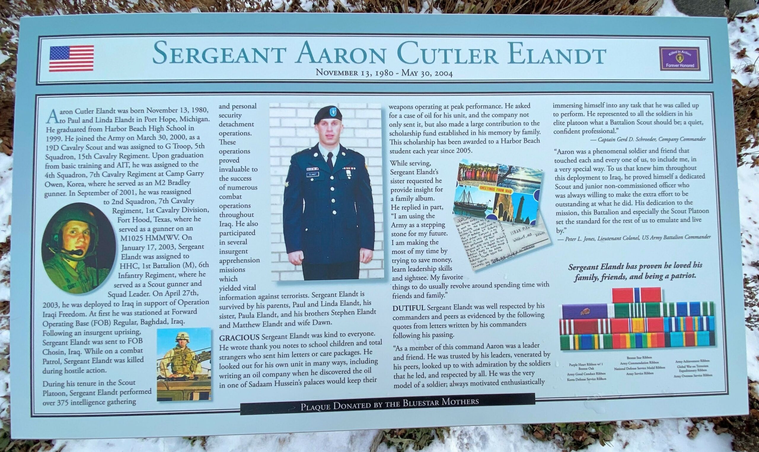 SERGEANT AARON CUTLER ELANDT WAR MEMORIAL PLAQUE