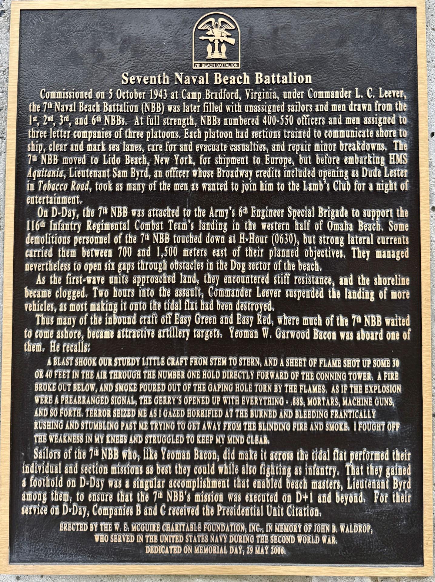 SEVENTH NAVAL BEACH BATTALION WAR MEMORIAL PLAQUE