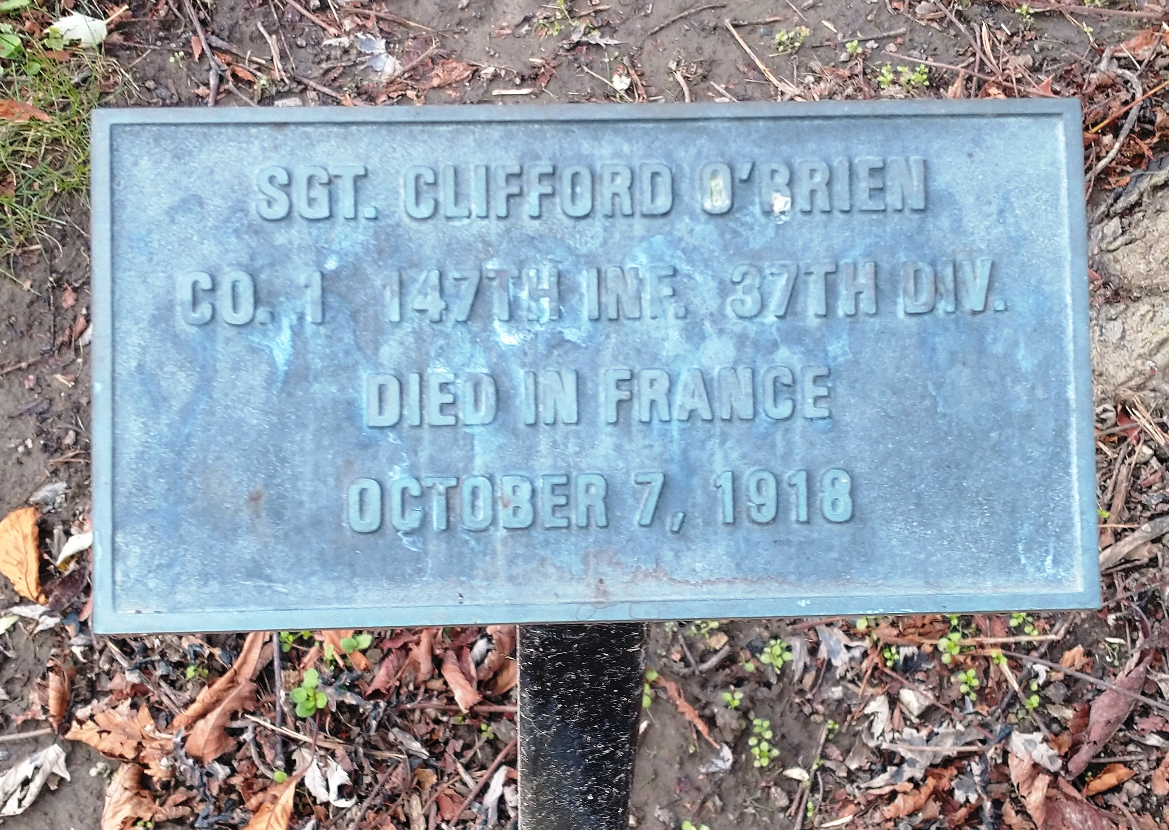 SGT. CLIFFORD O’BRIEN WAR MEMORIAL TREE PLAQUE
