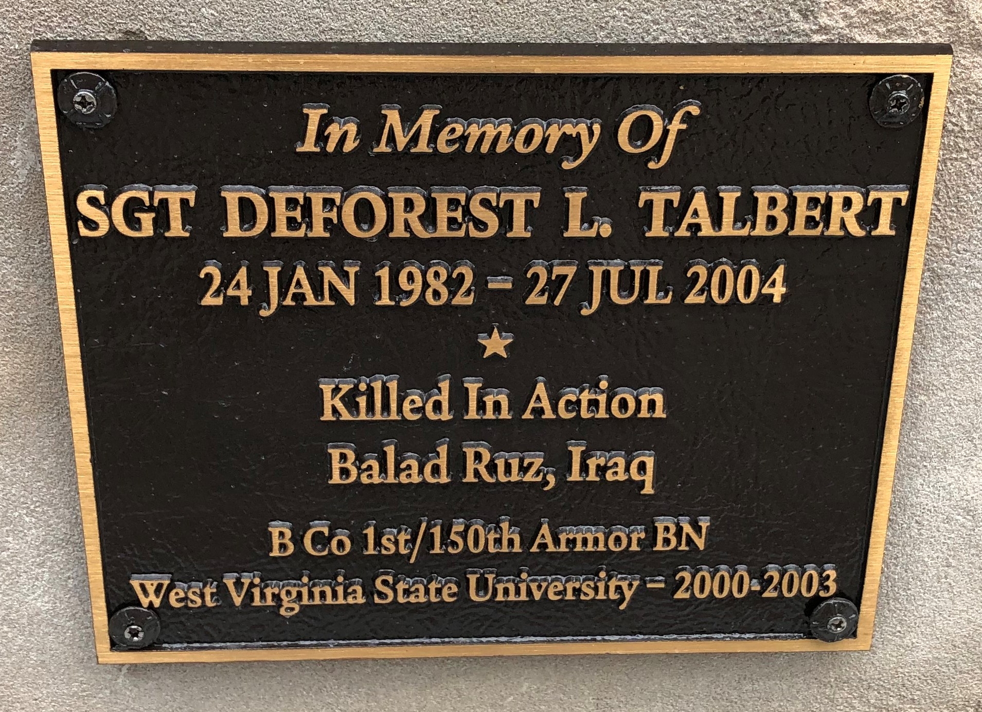 SGT DEFOREST L. TALBERT WAR MEMORIAL PLAQUE