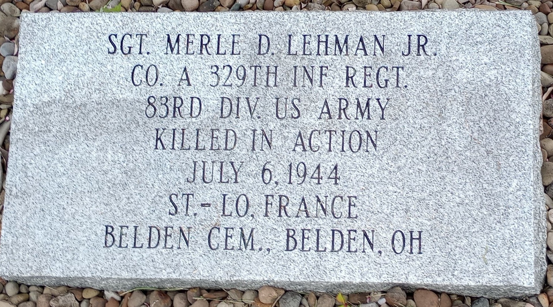 SGT. MERLE D. LEHMAN JR. WAR MEMORIAL STONE