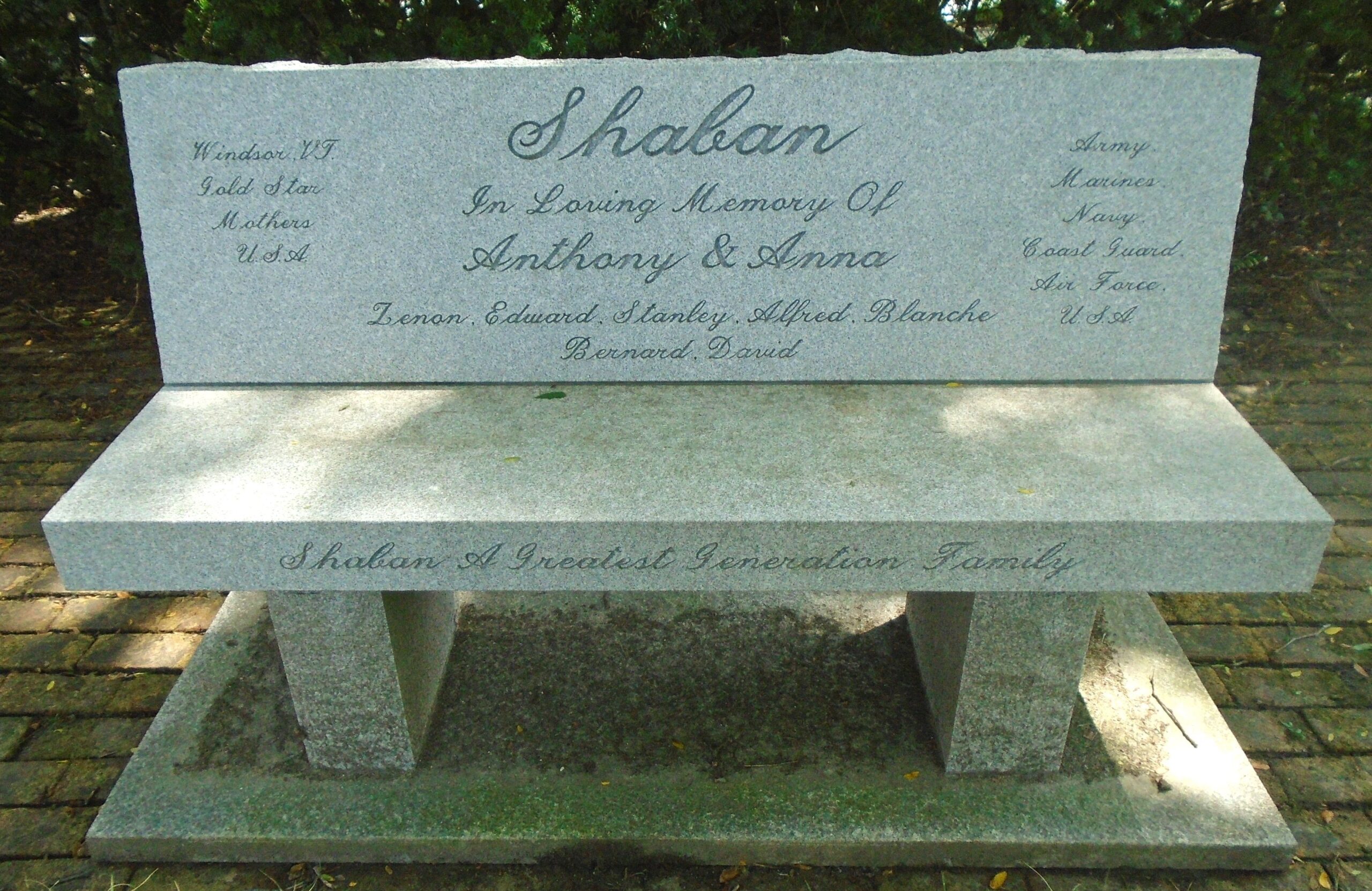 SHABAN A GREATEST GENERATION FAMILY MEMORIAL BENCH