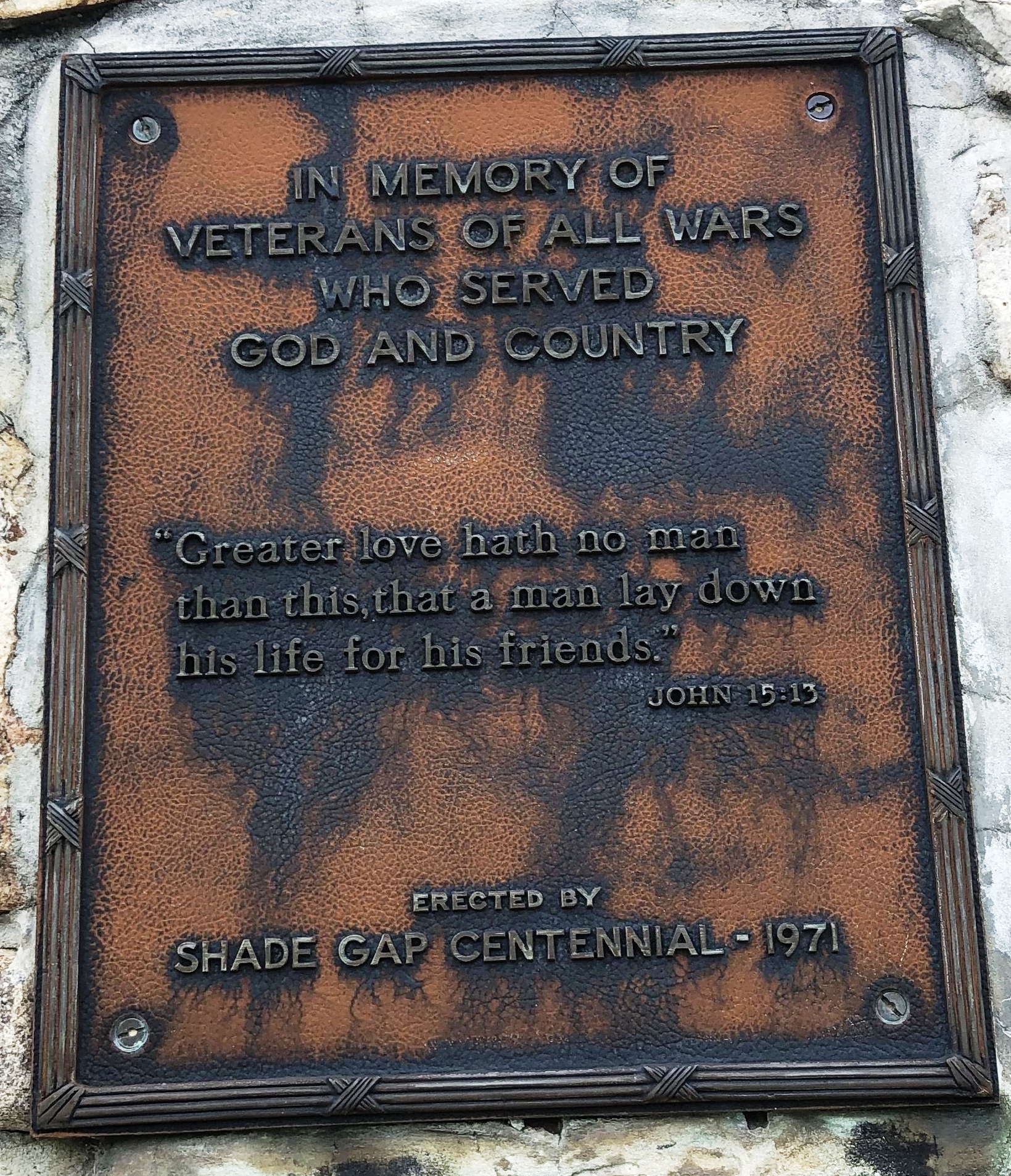 SHADE GAP ALL WARS VETERANS MEMORIAL PLAQUE