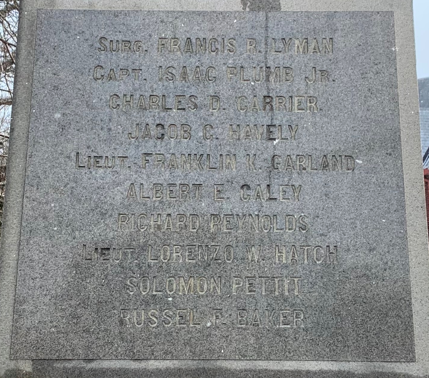 SHERBURNE CIVIL WAR MEMORIAL HONOR ROLL STONE