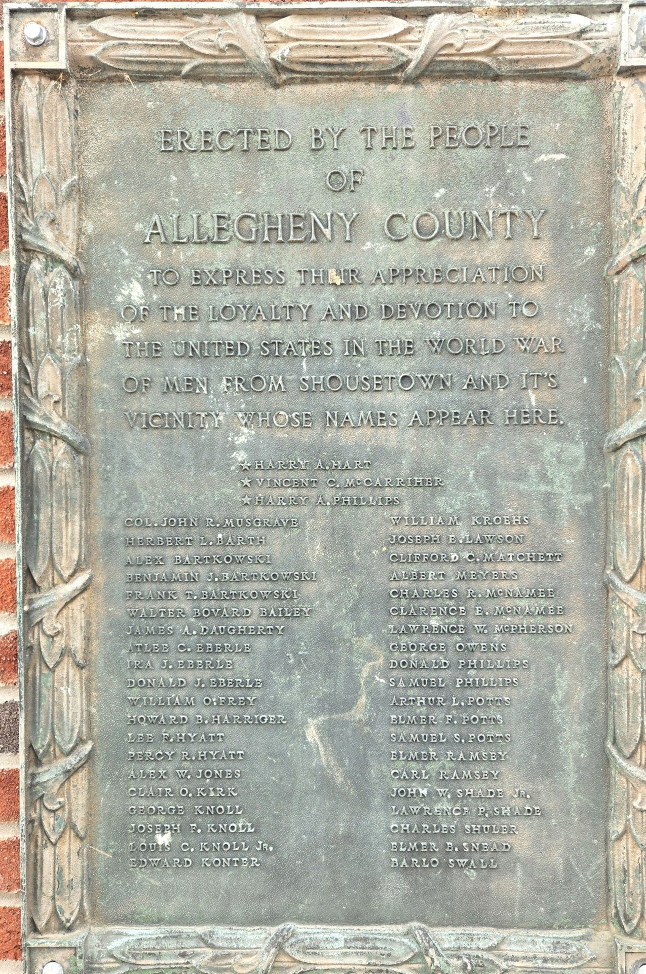 SHOUSETOWN WORLD WAR MEMORIAL PLAQUE