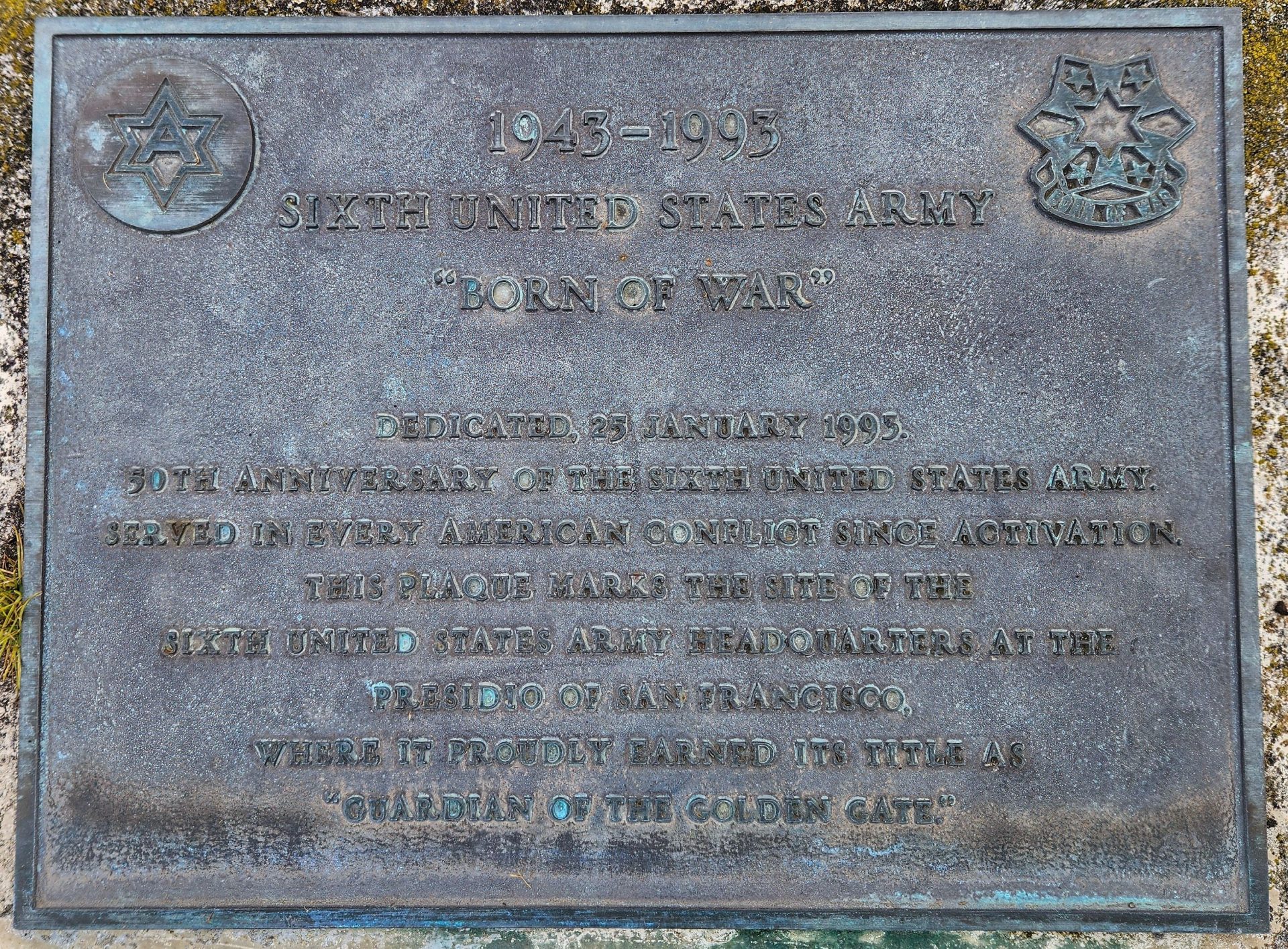 SIXTH UNITED STATES ARMY WAR MEMORIAL PLAQUE