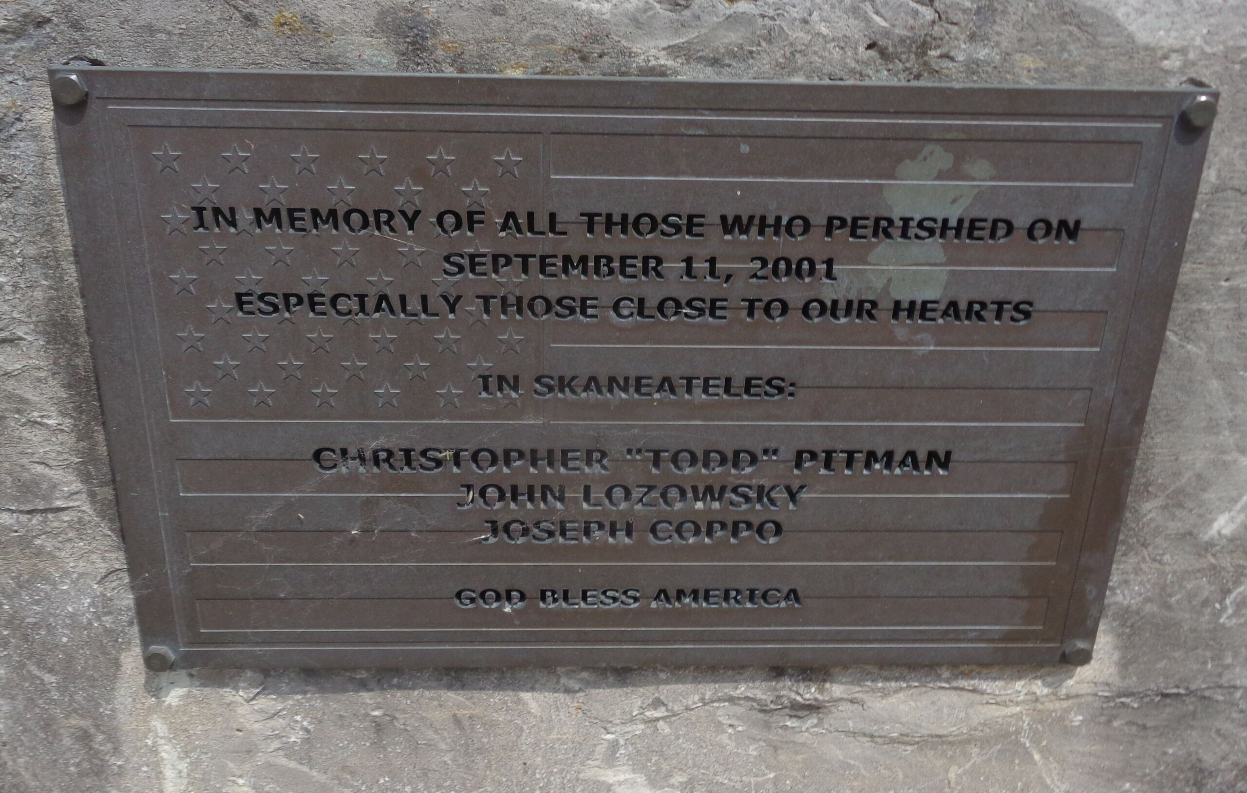 SKANEATELES SEPTEMBER 11, 2001 MEMORIAL PLAQUE
