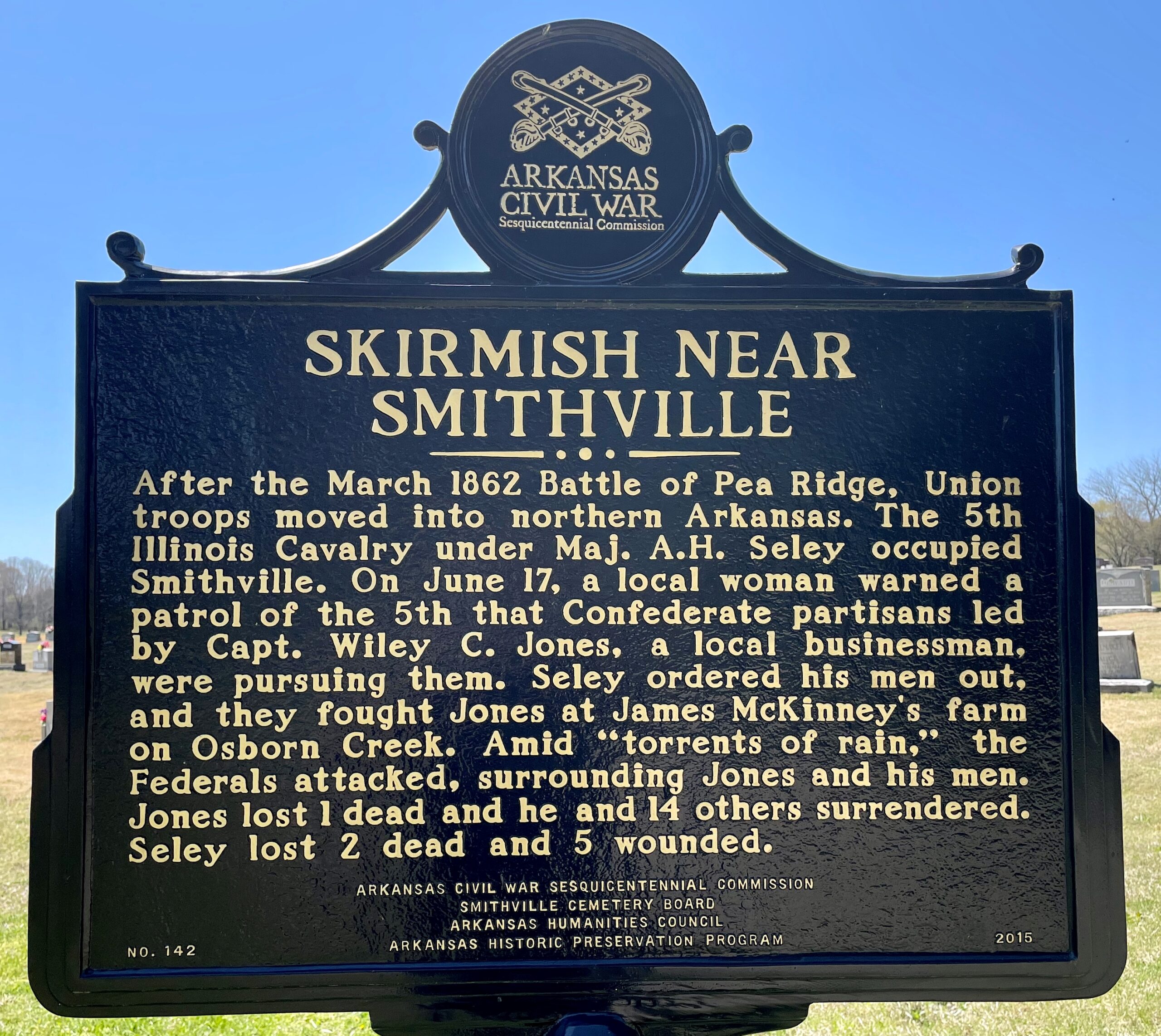 SKIRMISH NEAR SMITHVILLE WAR MEMORIAL MARKER