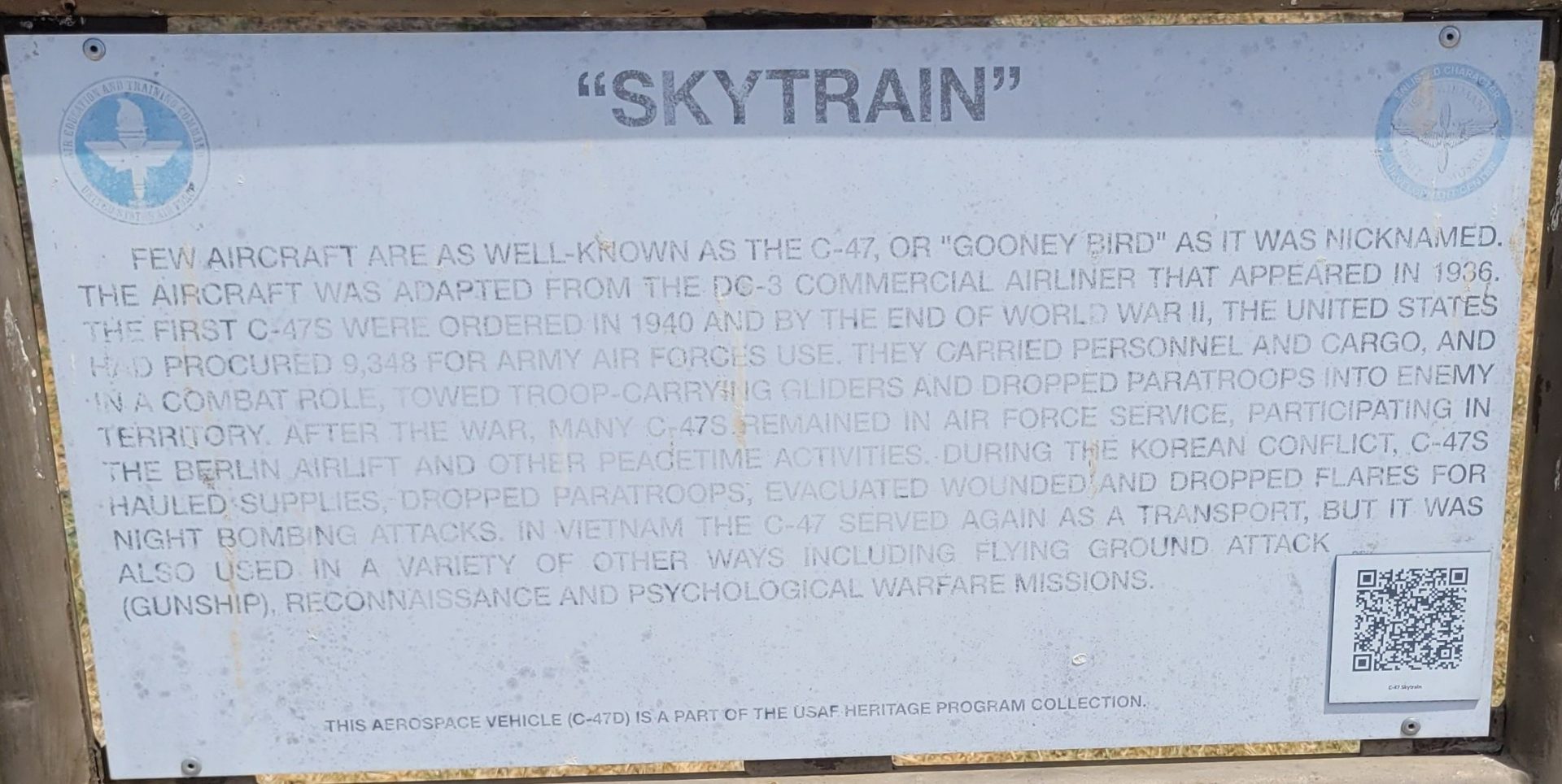 “SKYTRAIN” C-47D MEMORIAL AIRCRAFT PLAQUE
