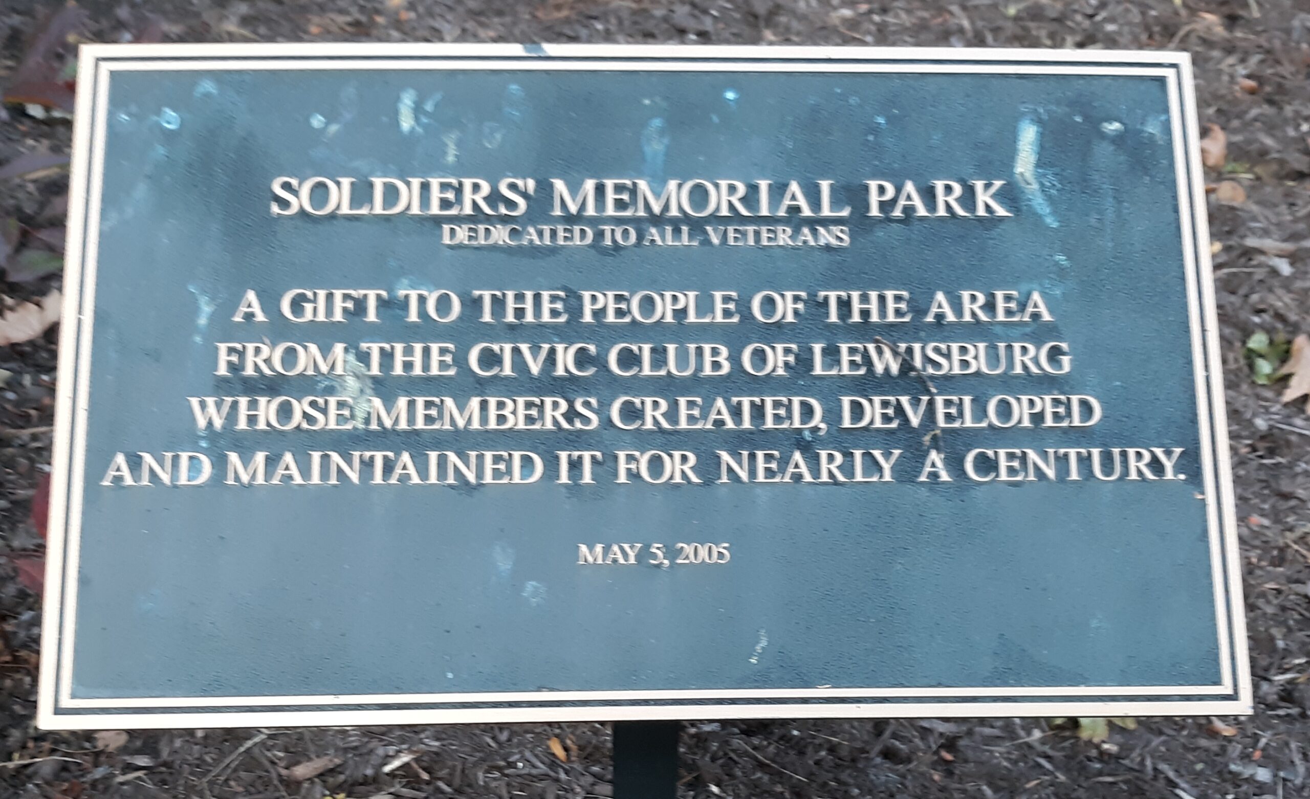 SOLDIERS’ MEMORIAL PARK PLAQUE