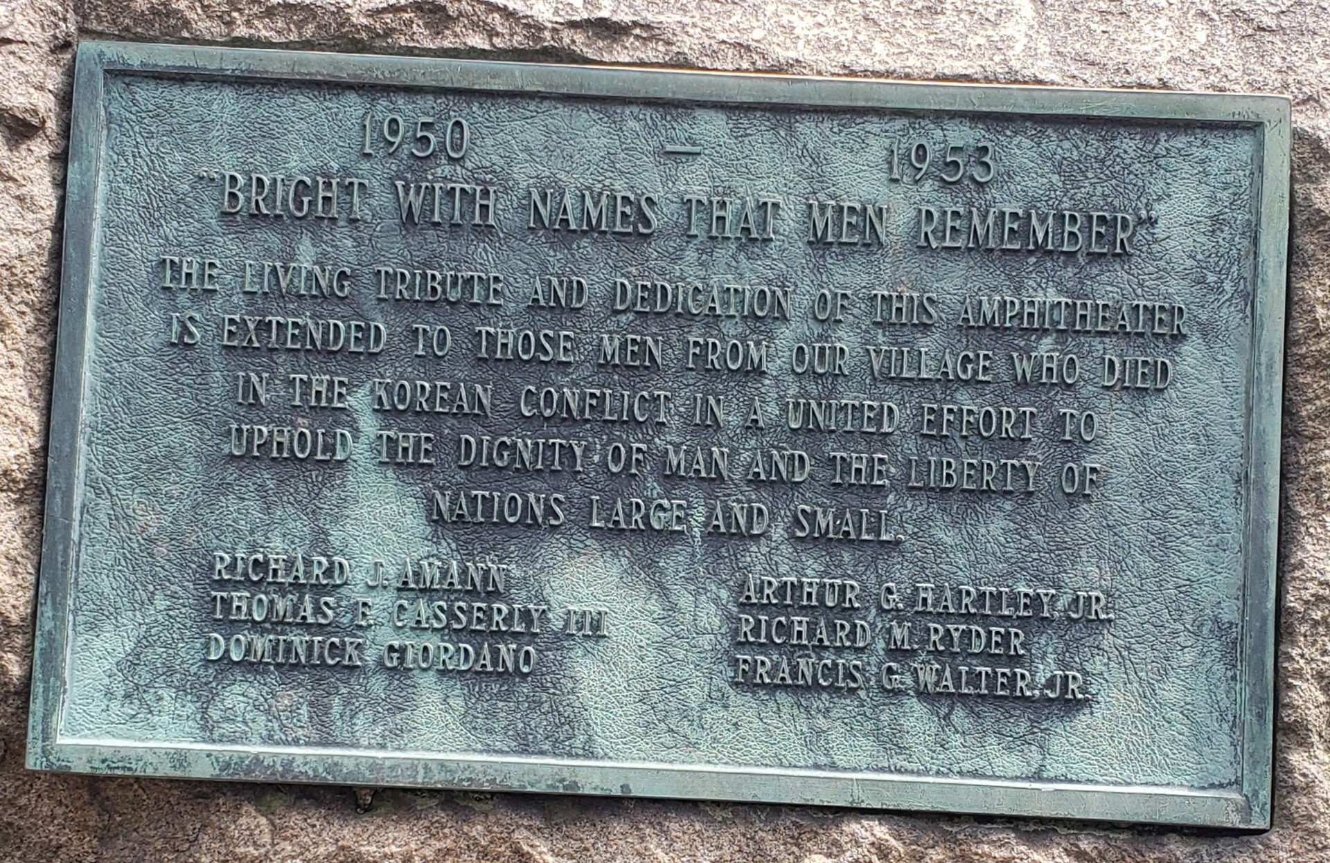SOUTH ORANGE KOREAN CONFLICT MEMORIAL ROCK PLAQUE