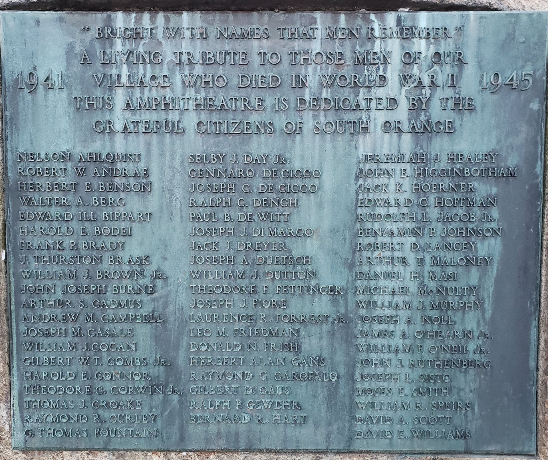SOUTH ORANGE WAR MEMORIAL ROCK PLAQUE A