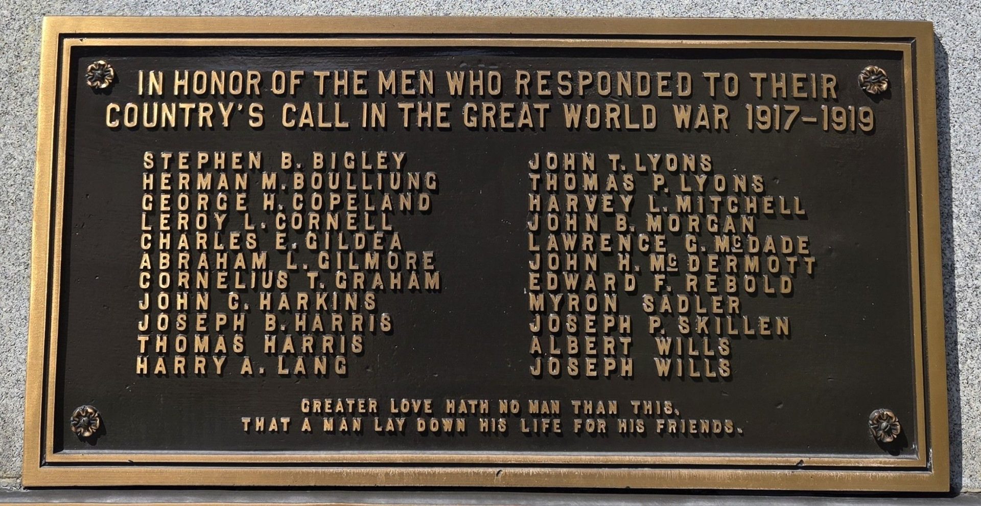 Wars Commemorated: WORLD WAR I