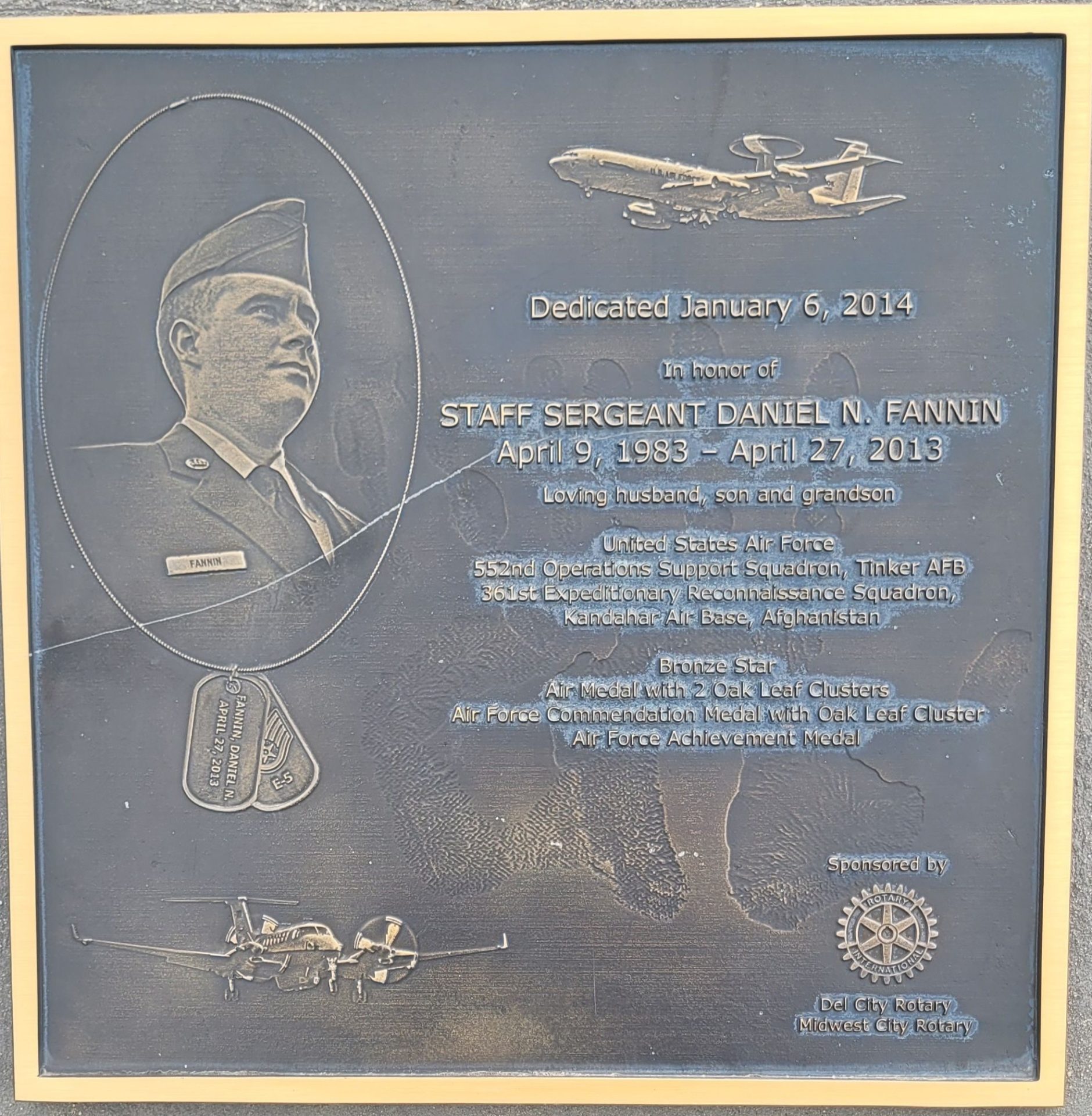 STAFF SERGEANT DANIEL N. FANNIN WAR MEMORIAL PLAQUE