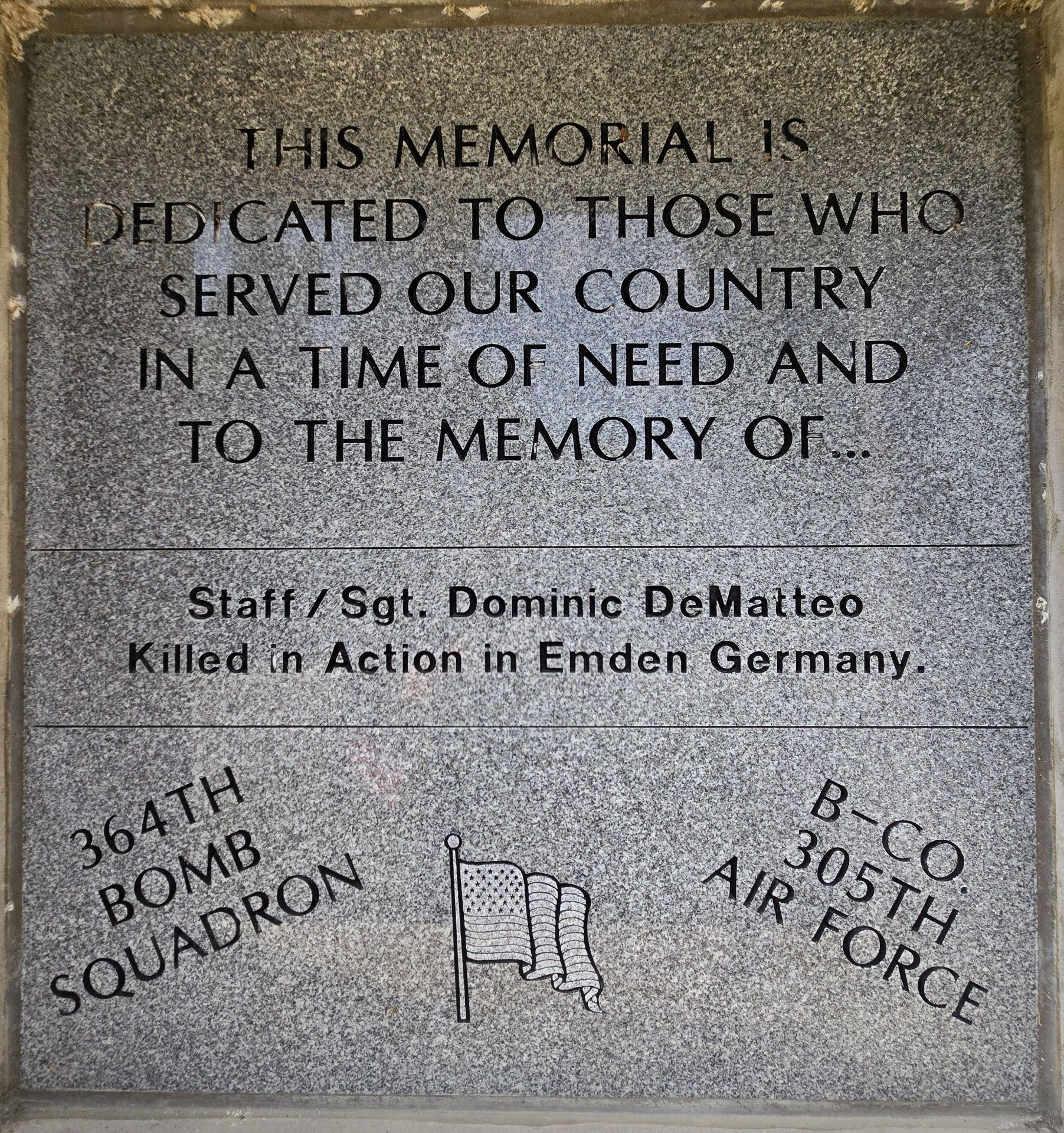 STAFF/SGT. DOMINIC DEMATTEO WAR VETERANS MEMORIAL STONE
