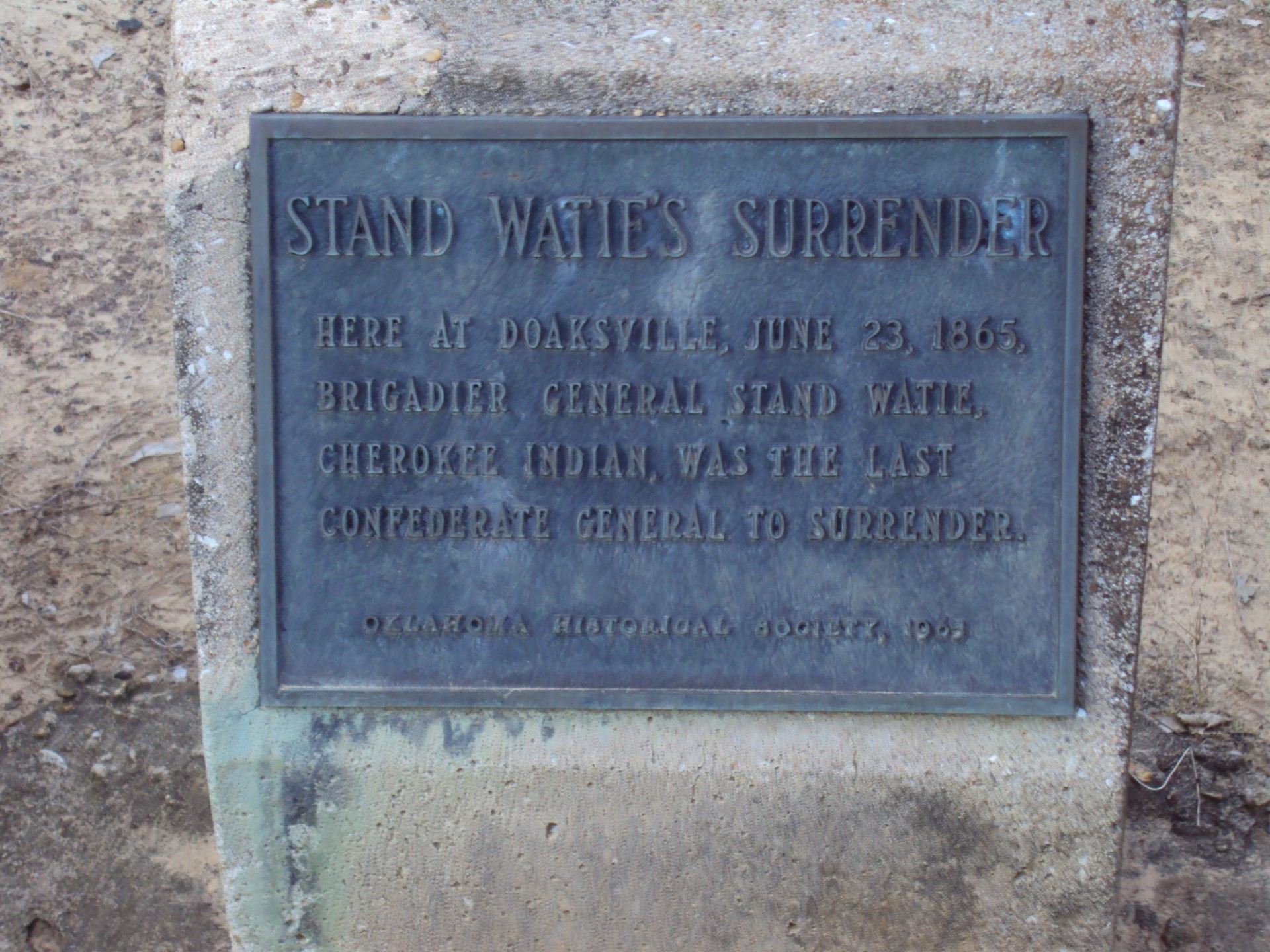 STAND WATIE’S SURRENDER MEMORIAL PLAQUE