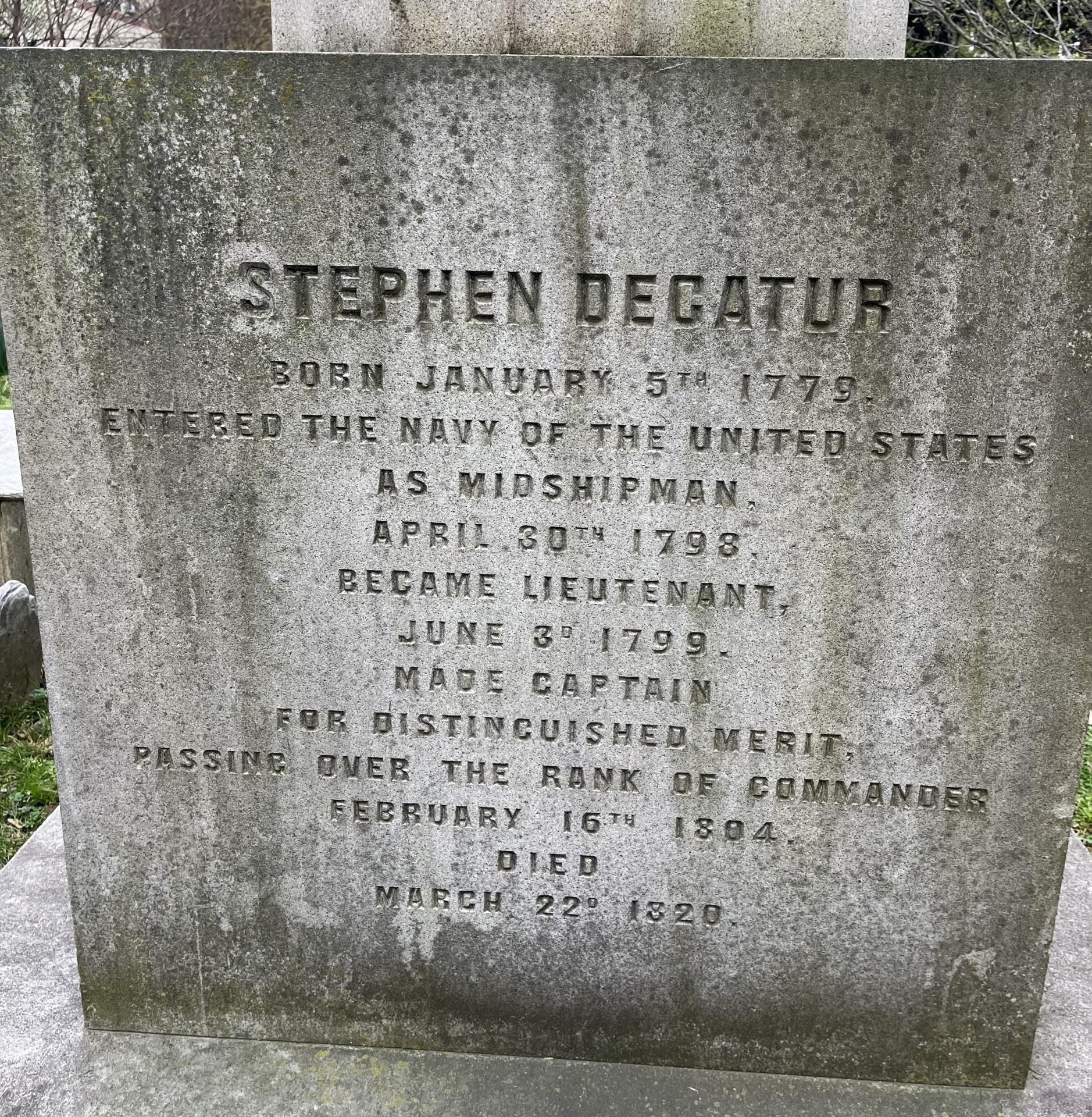 STEPHEN DECATUR WAR MEMORIAL SHAFT SIDE A