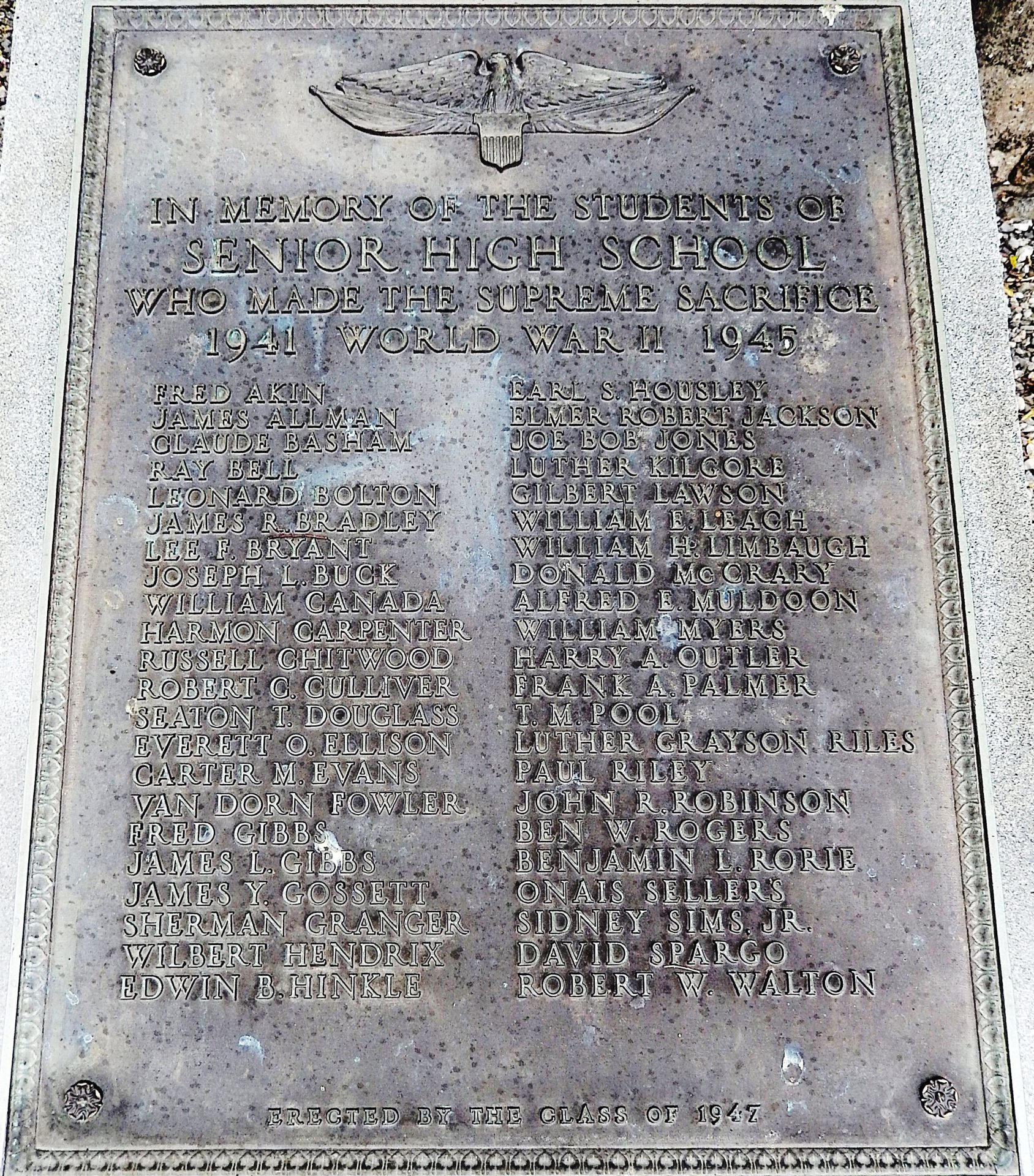 STUDENTS OF SENIOR HIGH SCHOOL WHO MADE THE SUPREME SACRIFICE WORLD WAR II MEMORIAL PLAQUE
