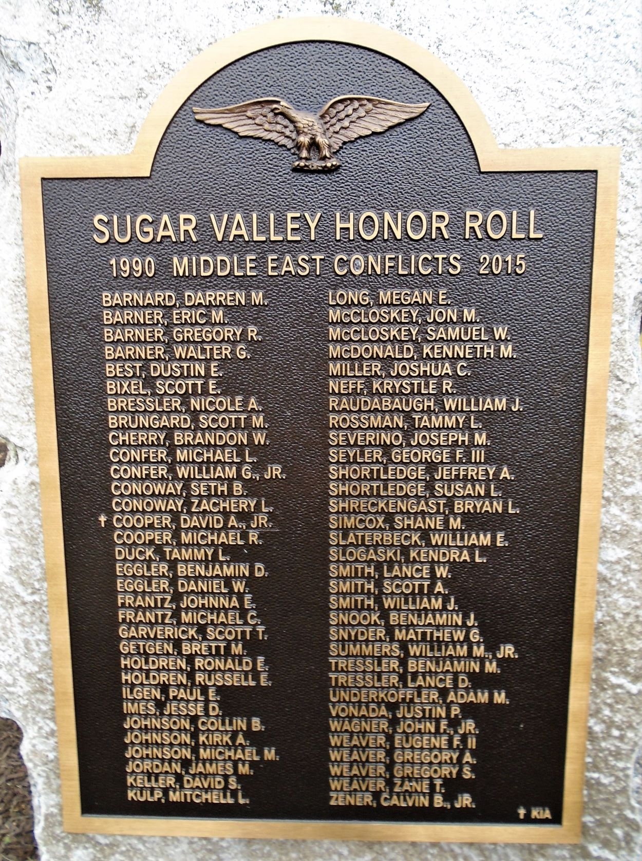 SUGAR VALLEY HONOR ROLL MIDDLE EAST CONFLICTS MEMORIAL PLAQUE
