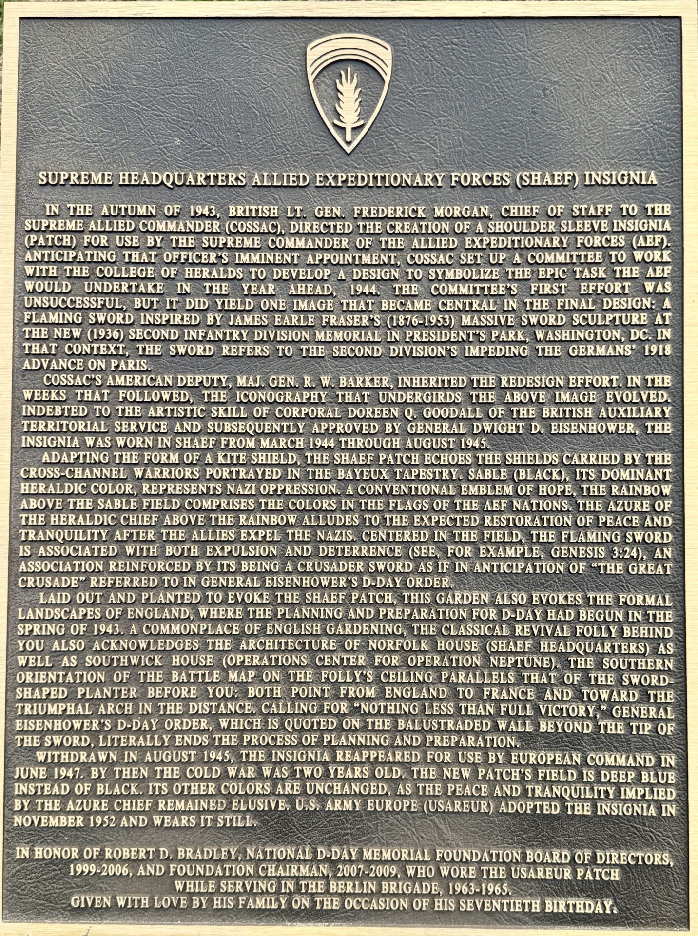 SUPREME HEADQUARTERS ALLIED EXPEDITIONARY FORCES WAR MEMORIAL PLAQUE