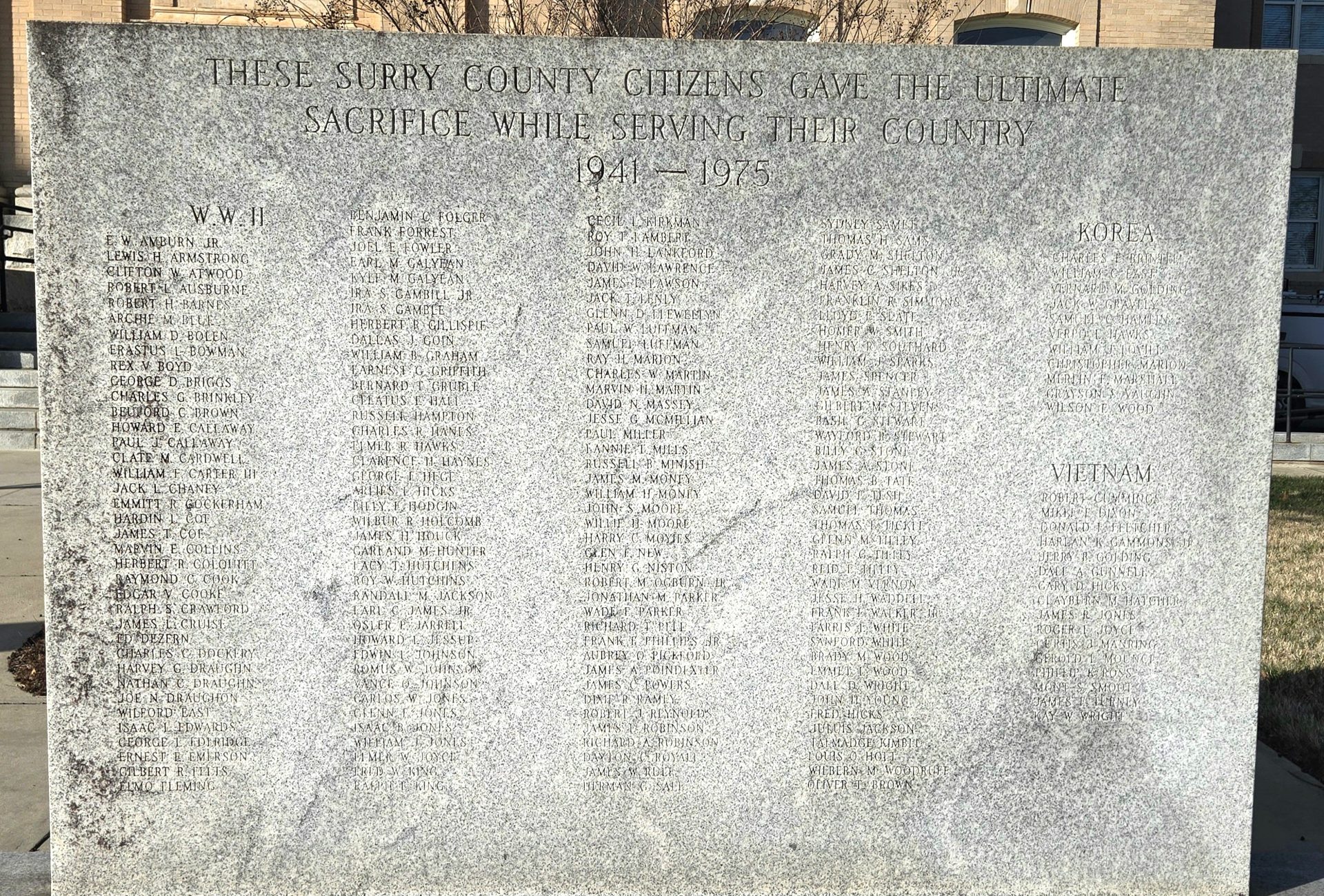 SURRY COUNTY CITIZENS ULTIMATE SACRIFICE WAR MEMORIAL FRONT