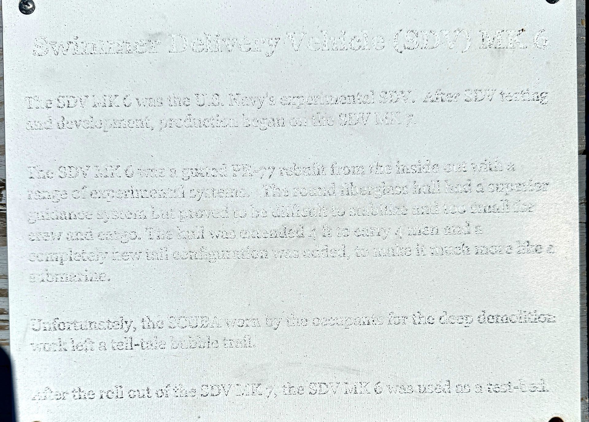 SWIMMER DELIVERY VEHICLE (SDV) MK 6 MEMORIAL PLAQUE