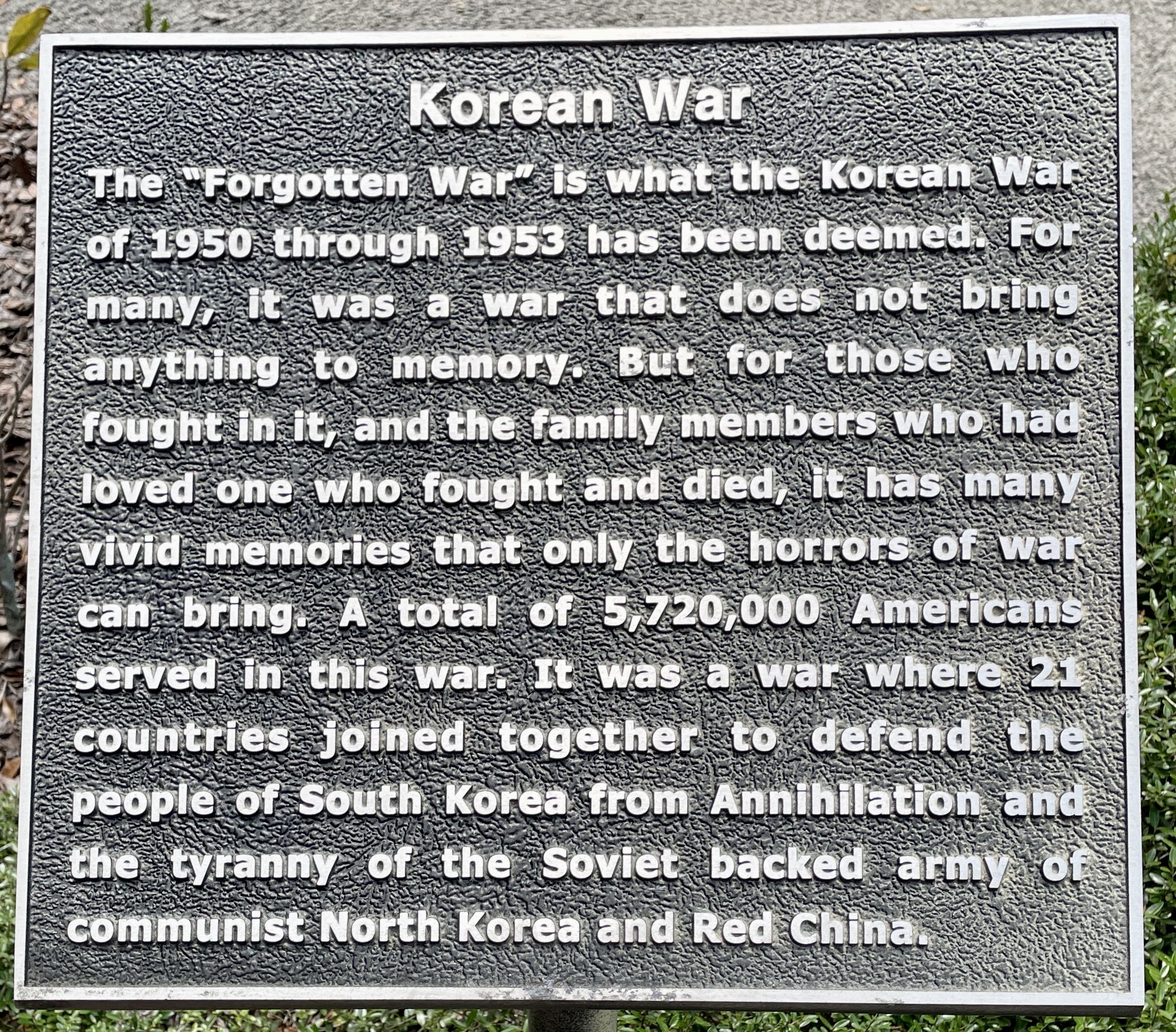 TAYLOR COUNTY KOREAN WAR “FORGOTTEN WAR” MEMORIAL PLAQUE A