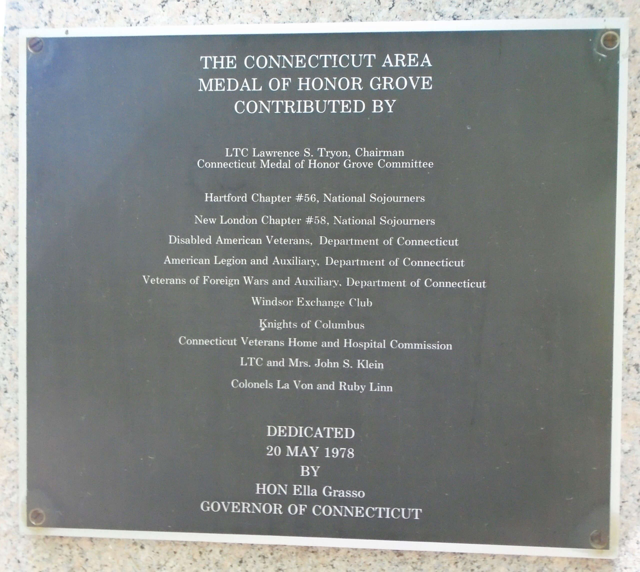 THE CONNECTICUT AREA MEDAL OF HONOR GROVE MEMORIAL PLAQUE