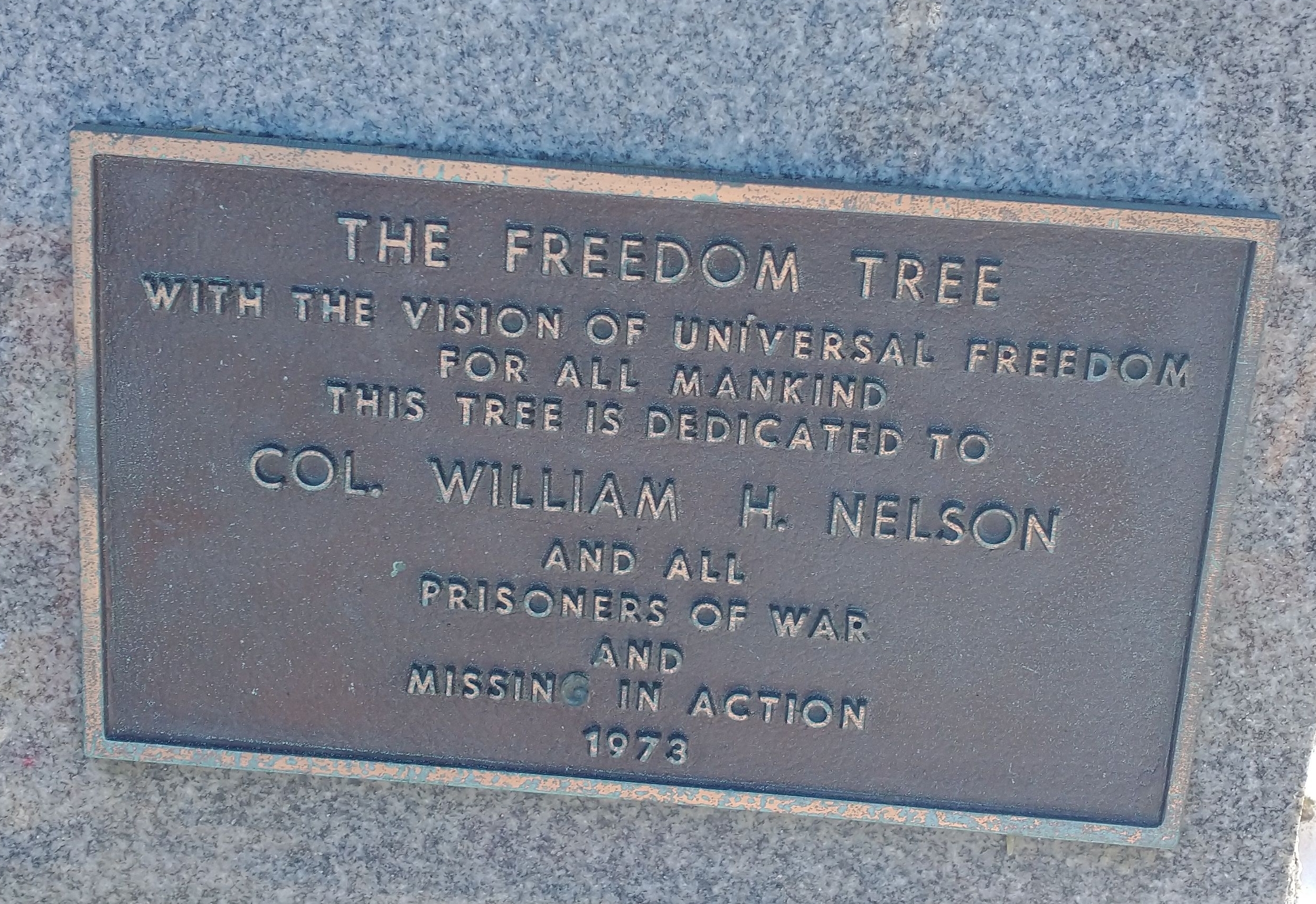 THE FREEDOM TREE COL. WILLIAM H. NELSON MEMORIAL PLAQUE