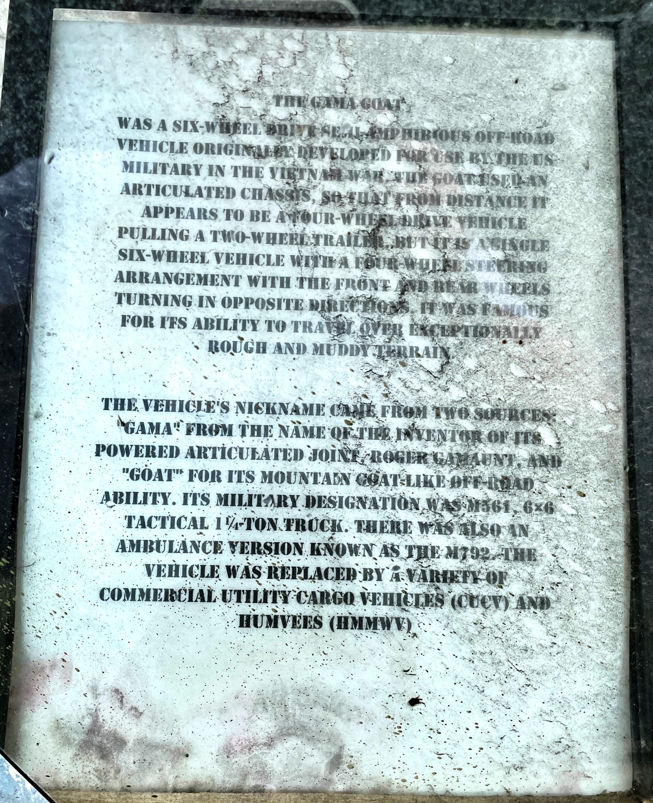 THE GAMA GOAT MILITARY VEHICLE MEMORIAL PLAQUE