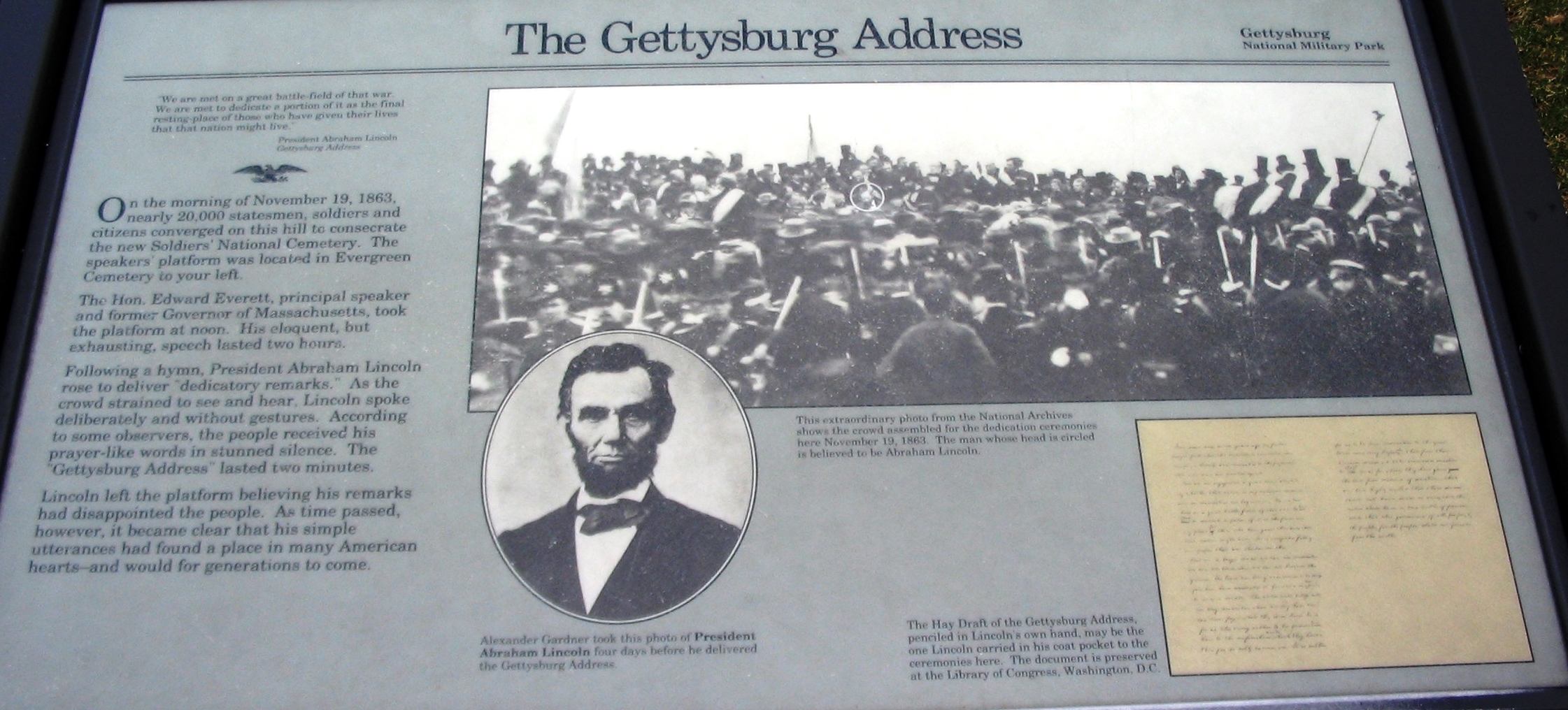 THE GETTYSBURG ADDRESS WAR MEMORIAL PANEL