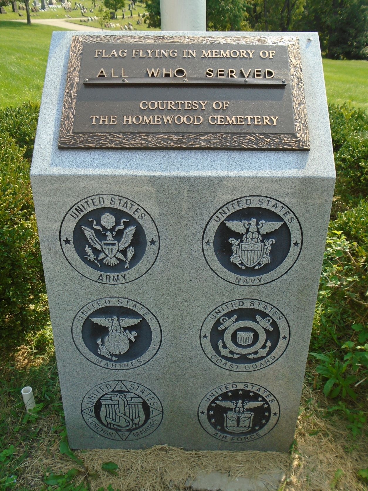 THE HOMEWOOD CEMETERY ALL WHO SERVED MEMORIAL FLAGPOLE PLAQUE