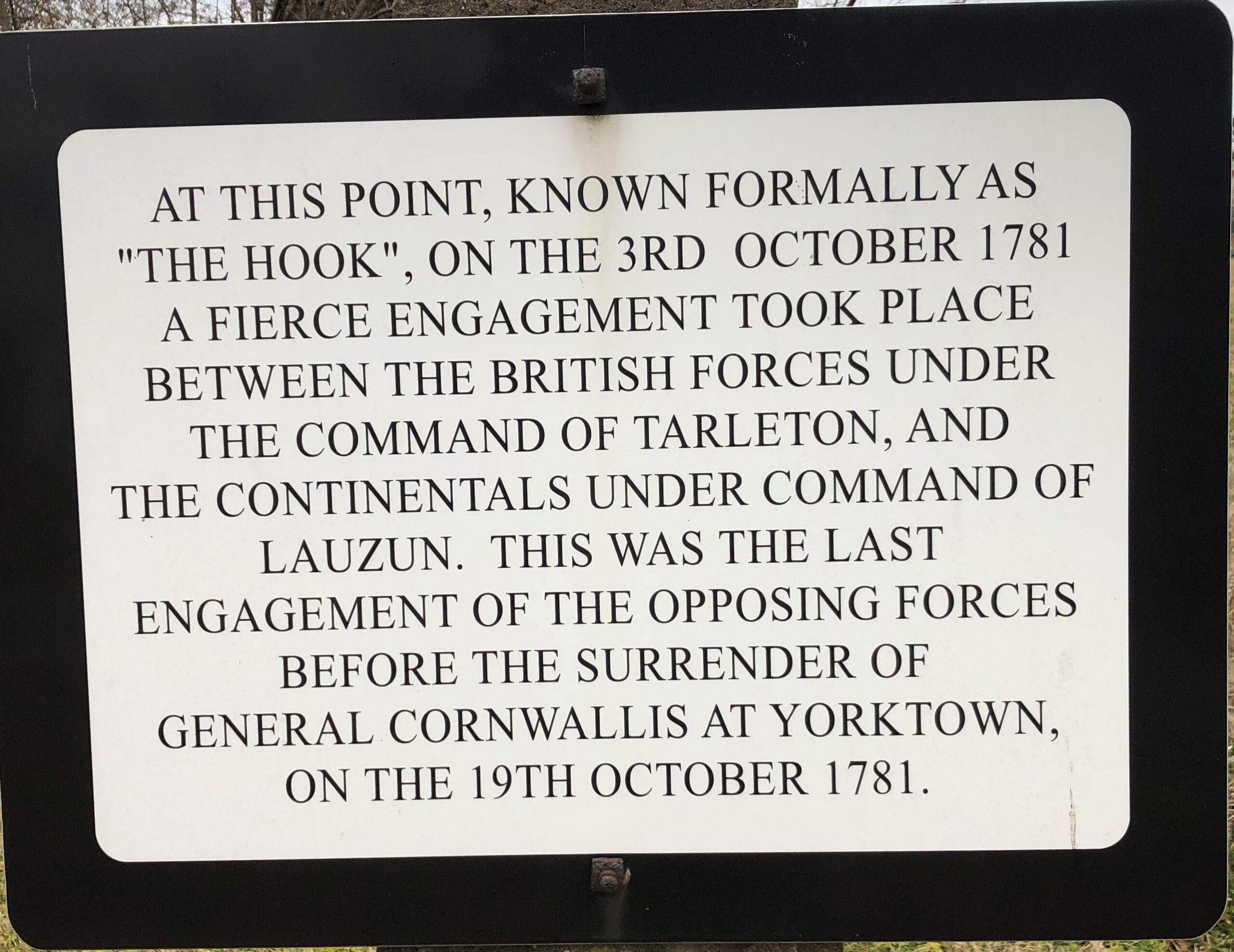 “THE HOOK” REVOLUTIONARY WAR MEMORIAL PLAQUE