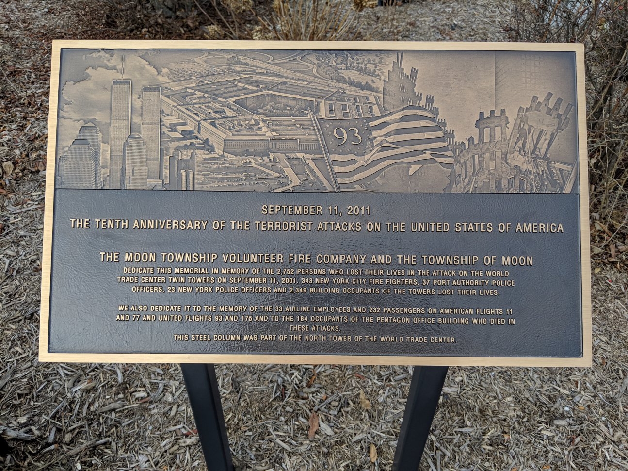THE MOON TOWNSHIP SEPTEMBER 11, 2011 MEMORIAL PLAQUE