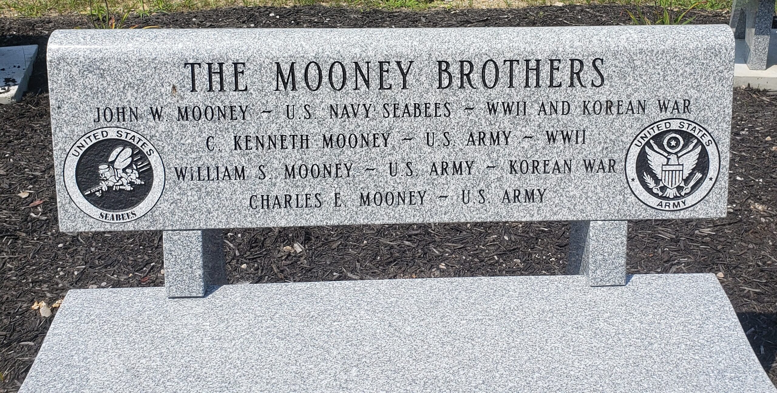 THE MOONEY BROTHERS WAR MEMORIAL BENCH CLOSE-UP