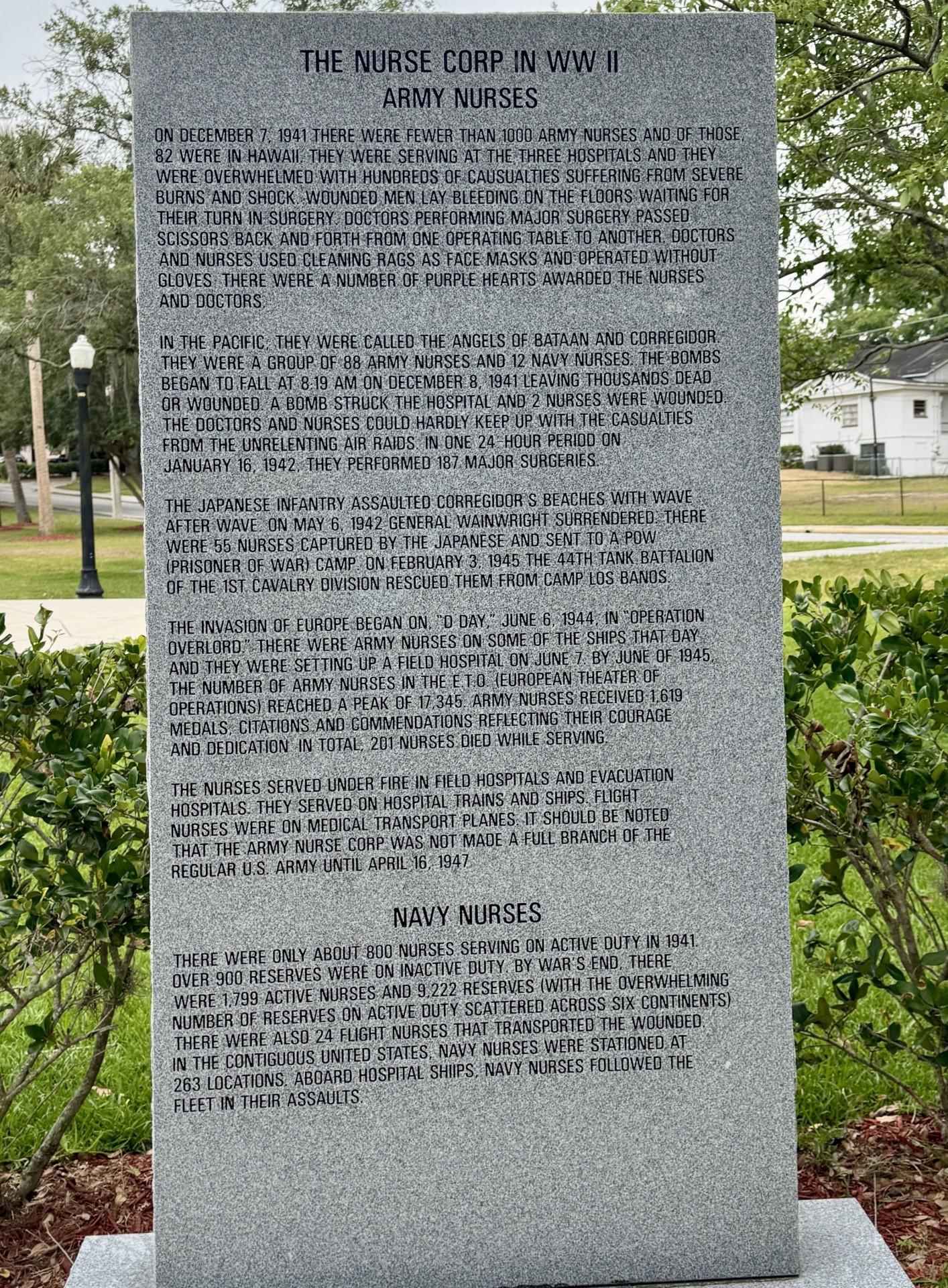 THE NURSE CORP IN WW II WAR MEMORIAL