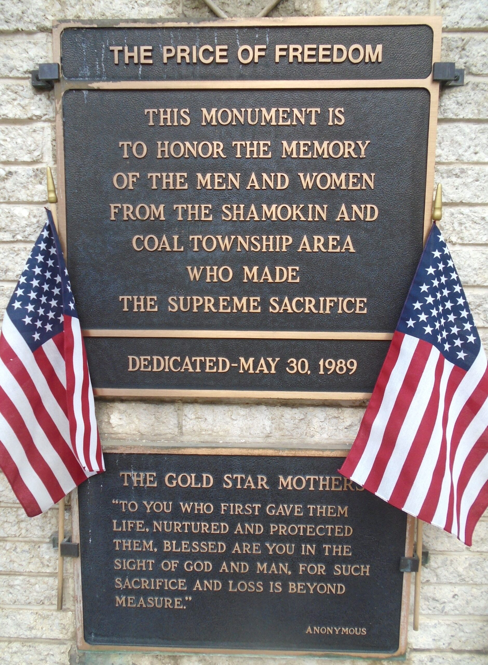 THE PRICE OF FREEDOM VETERANS MEMORIAL PLAQUE