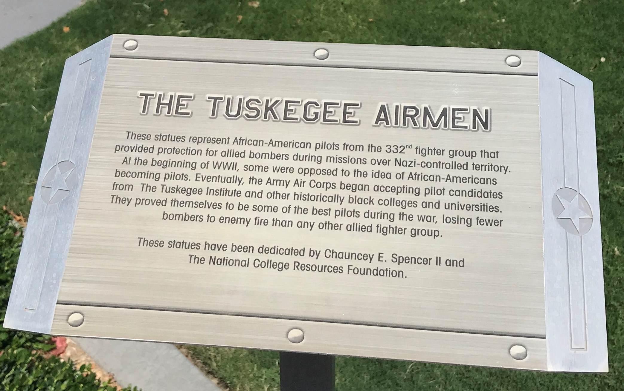 THE TUSKEGEE AIRMEN WAR MEMORIAL STATUES PLAQUE