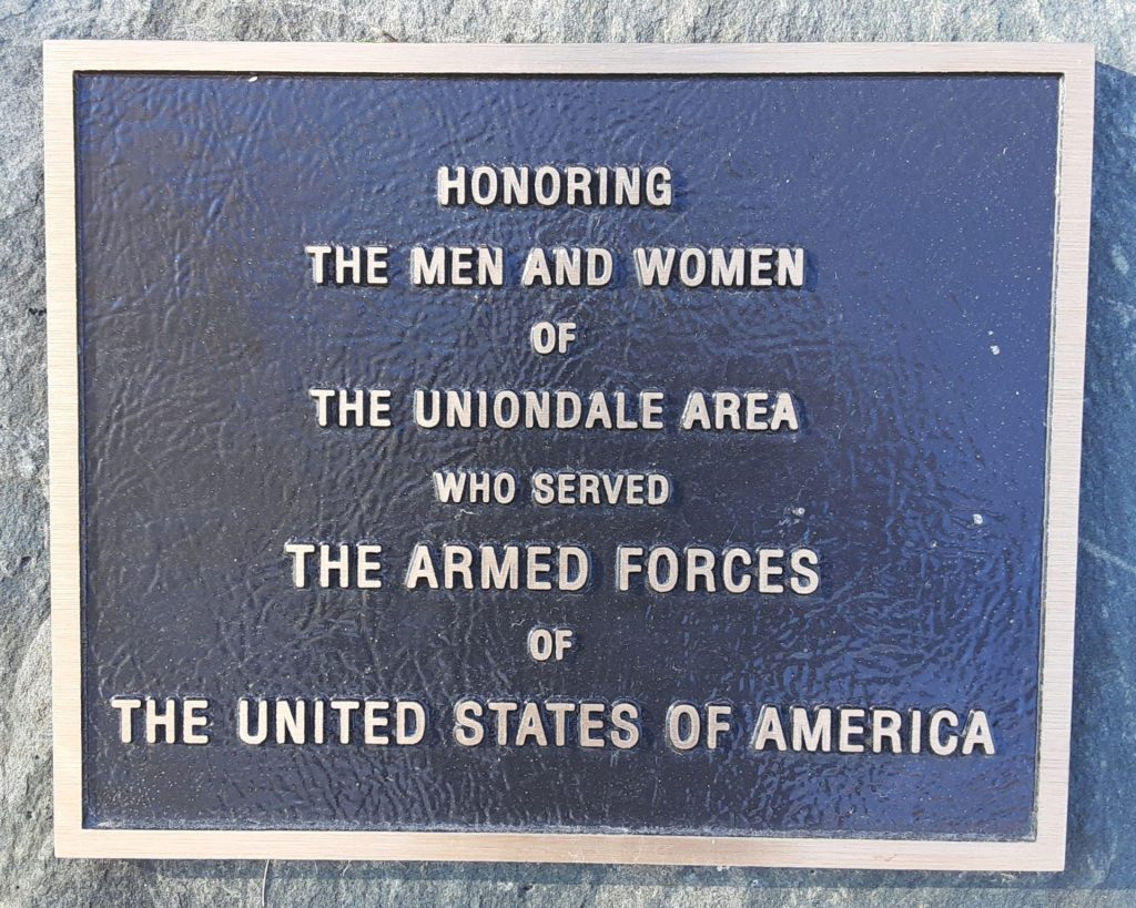 THE UNIONDALE AREA ARMED FORCES MEMORIAL PLAQUE