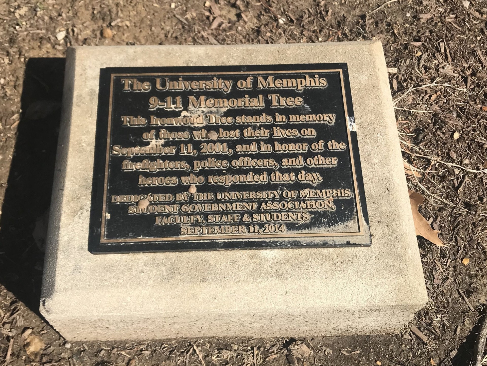 SEE ALSO-THE UNIVERSITYH OF MEMPHIS 9-11 MEMORIAL TREE PLAQUE