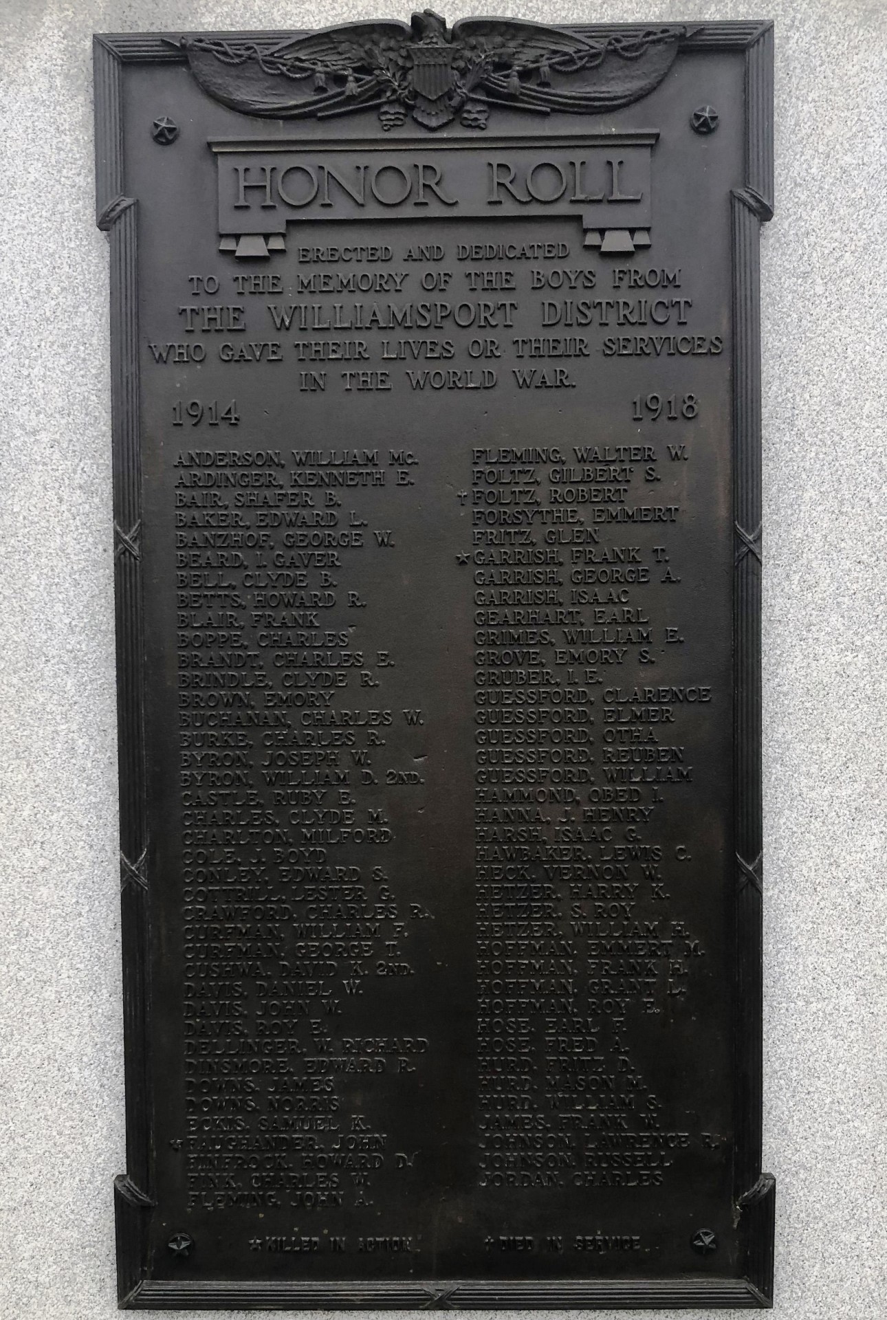 SEE ALSO-THE WILLIAMSPORT DISTRICT HONOR ROLL MEMORIAL