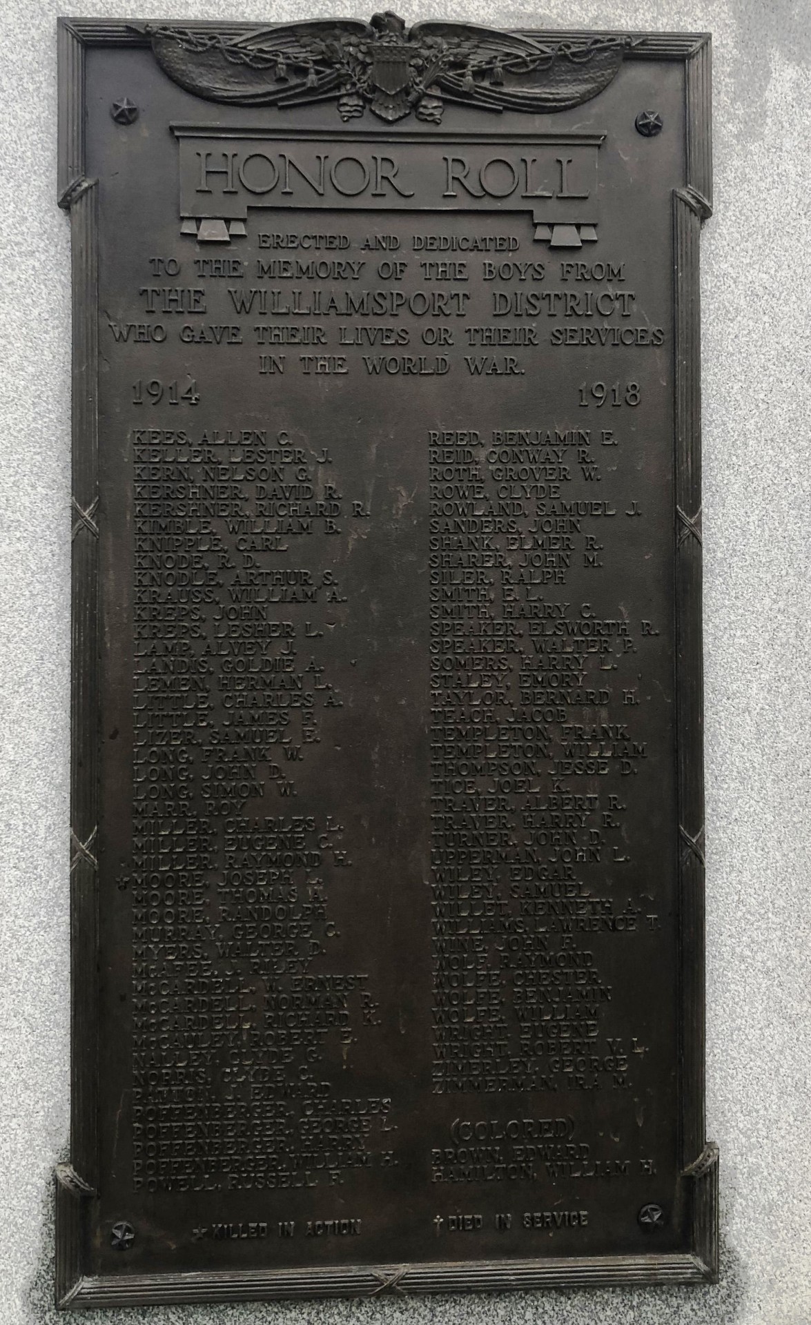SEE ALSO-THE WILLIAMSPORT DISTRICT HONOR ROLL MEMORIAL