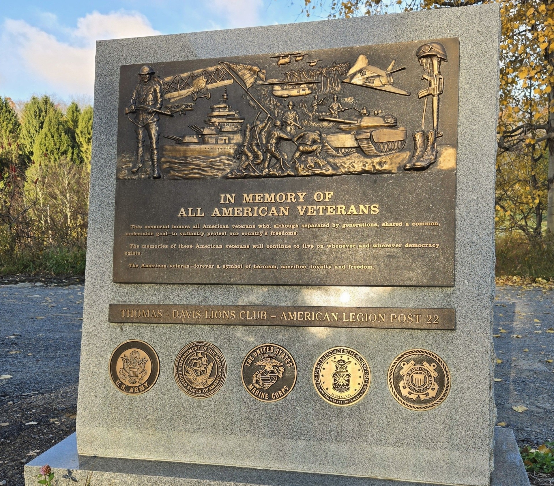 THOMAS IN MEMORY OF ALL AMERICAN VETERANS WAR MEMORIAL PLAQUE