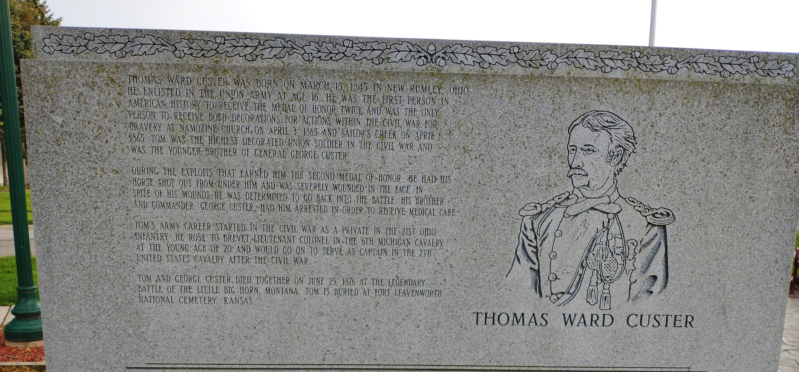 THOMAS WARD CUSTER MEDAL OF HONOR WAR MEMORIAL