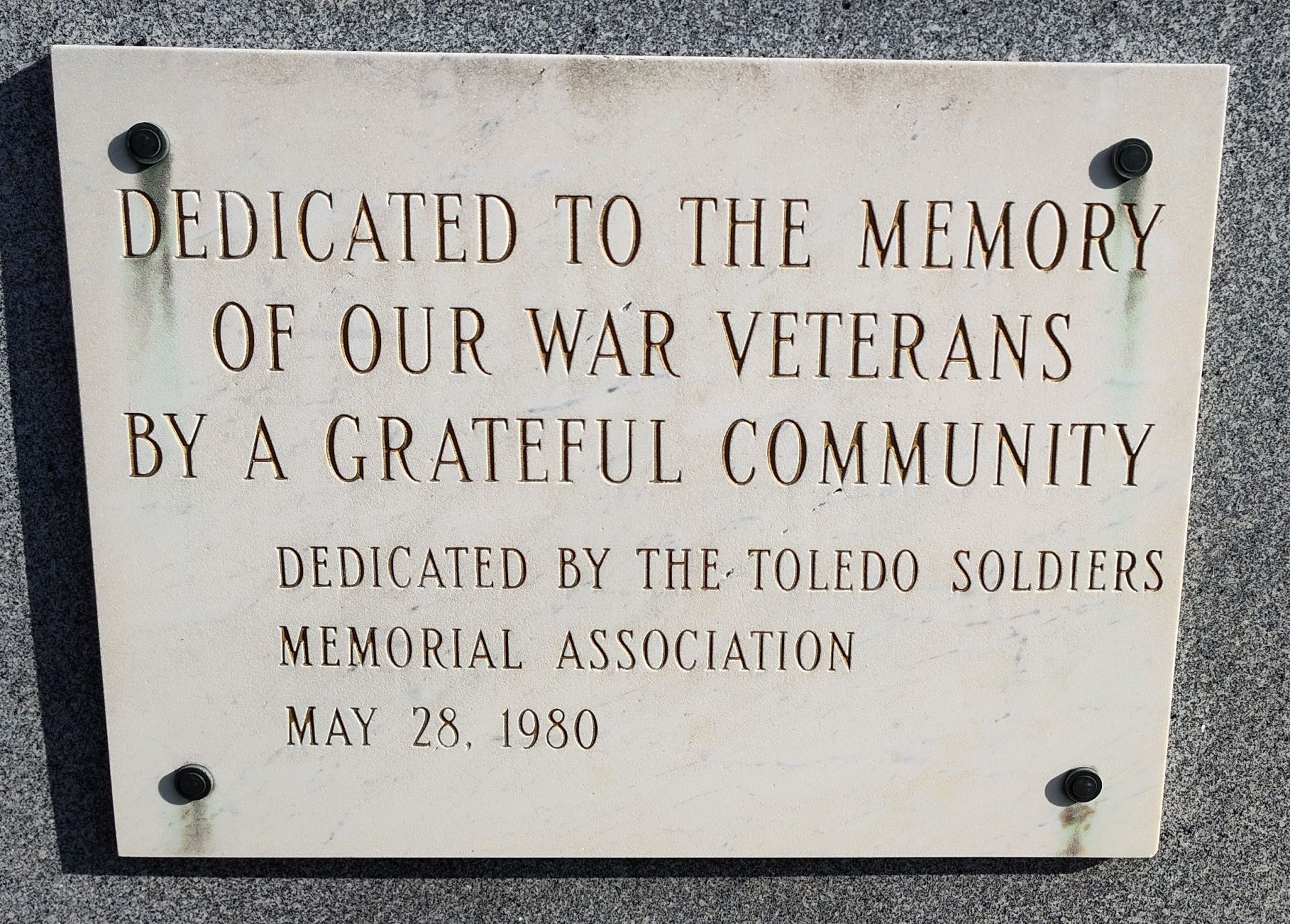 TOLEDO SOLDIERS MEMORIAL ASSOCIATION WAR VETERANS PLAQUE