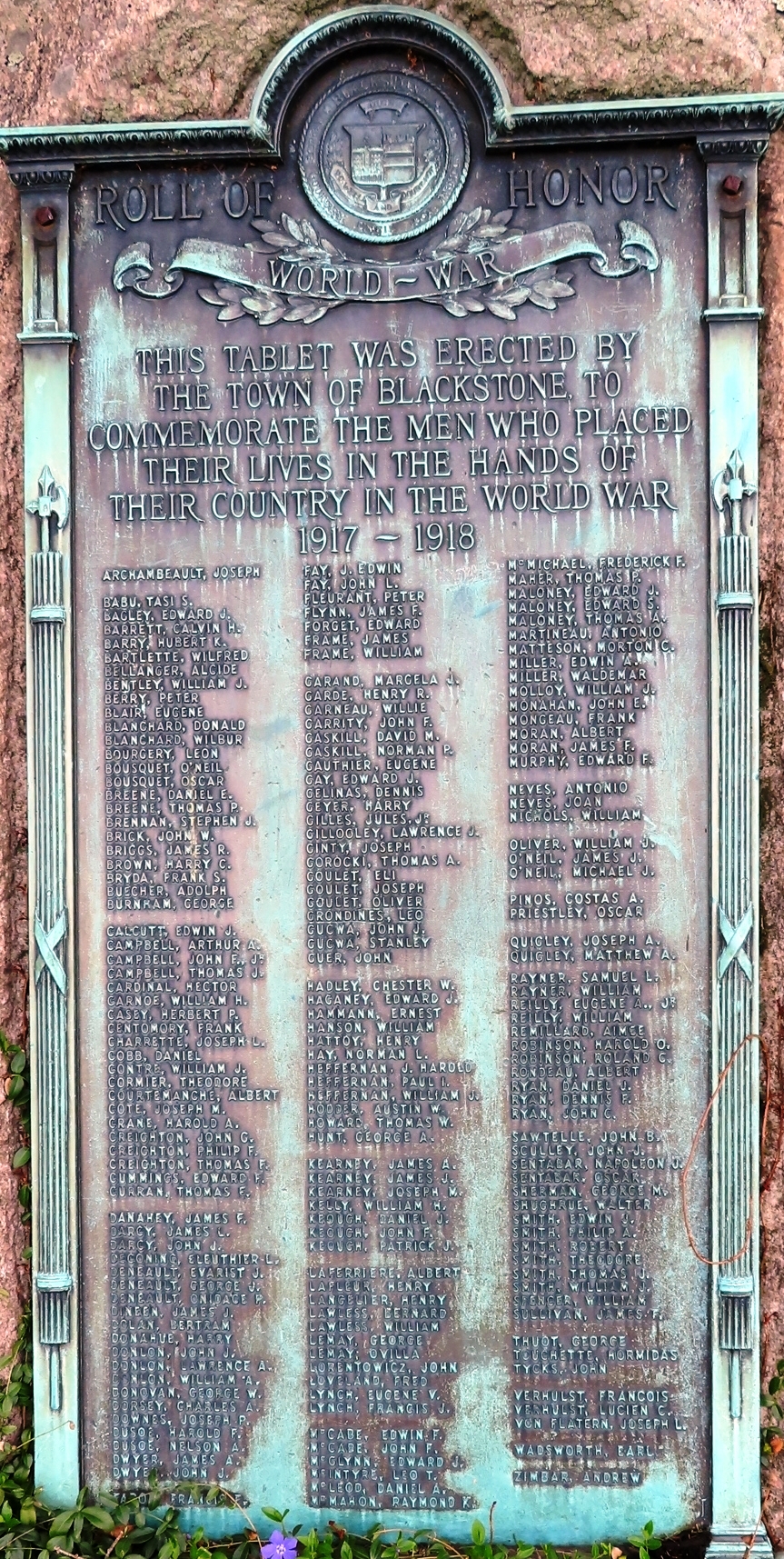 SEE ALSO-TOWN OF BLACKSTONE WORLD WAR ROLL OF HONOR MEMORIAL