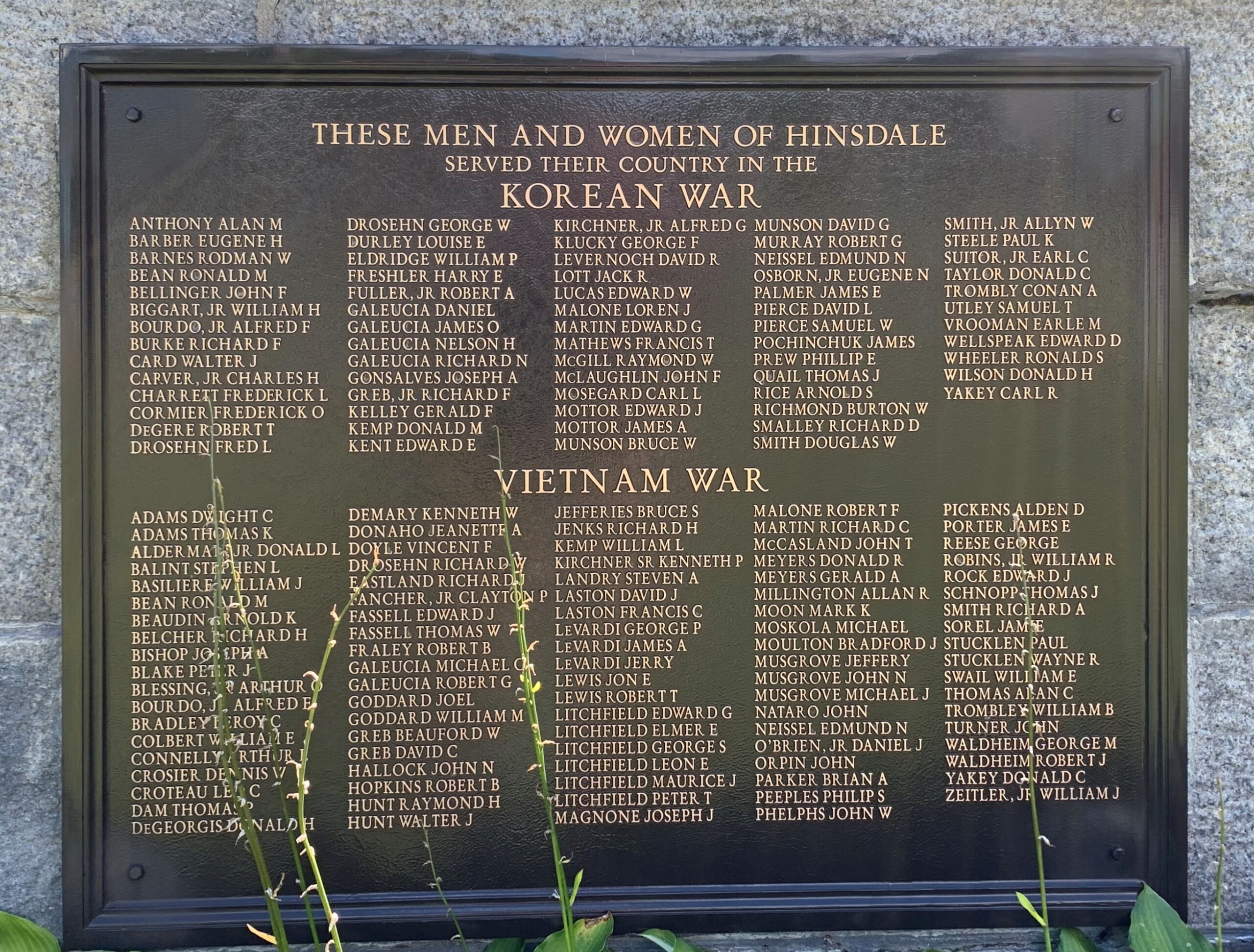 TOWN OF HINSDALE WAR MEMORIAL PLAQUE D